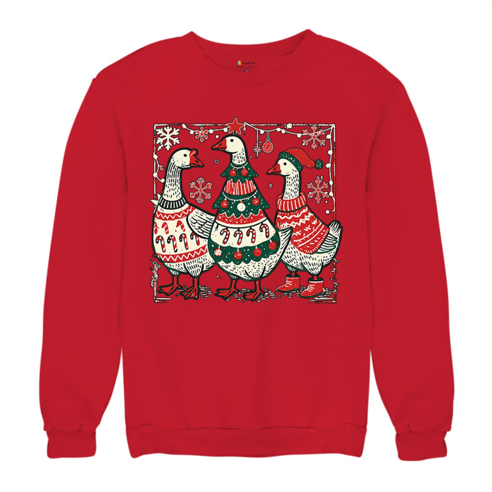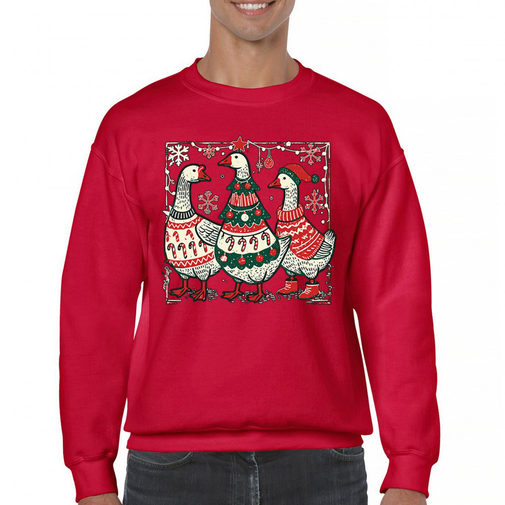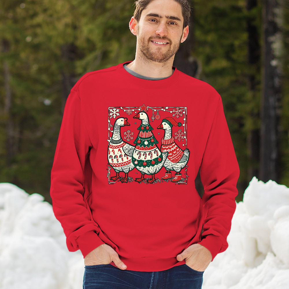 FESTIVE CHRISTMAS GEESE crewneck sweatshirt fun santa ugly sweater xmas party red