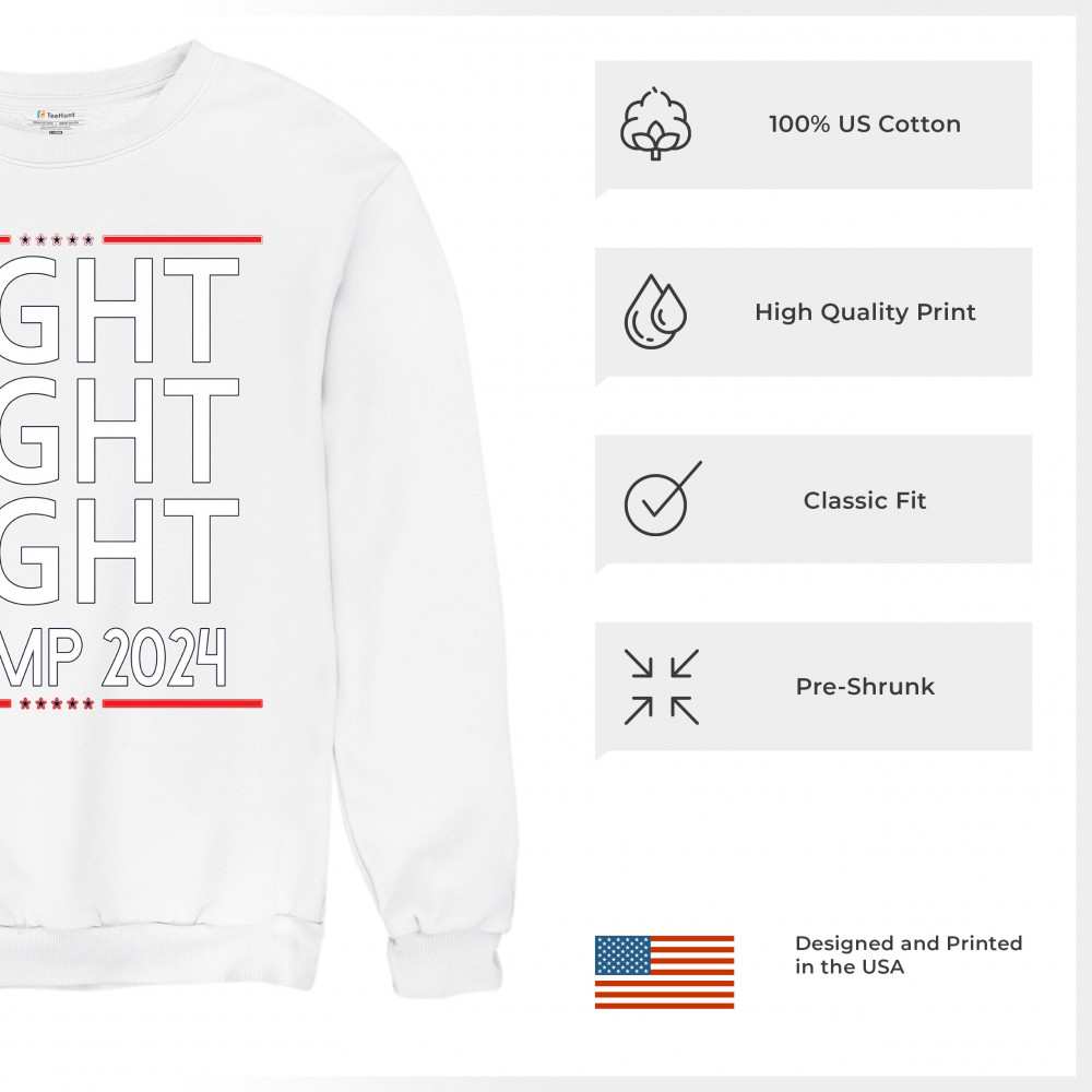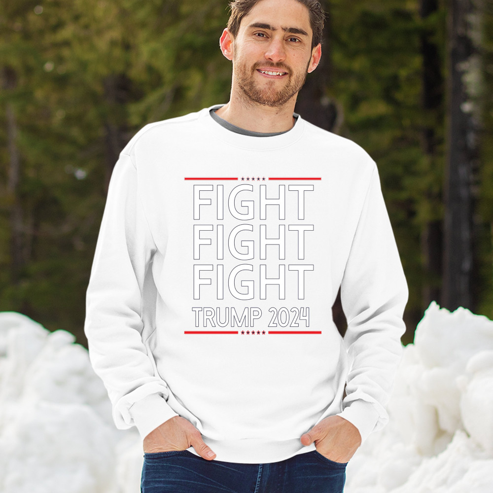 Show your Trump 2024 support with this bold "Fight Fight Fight" design. Perfect for rallies and everyday wear. Stand with America!