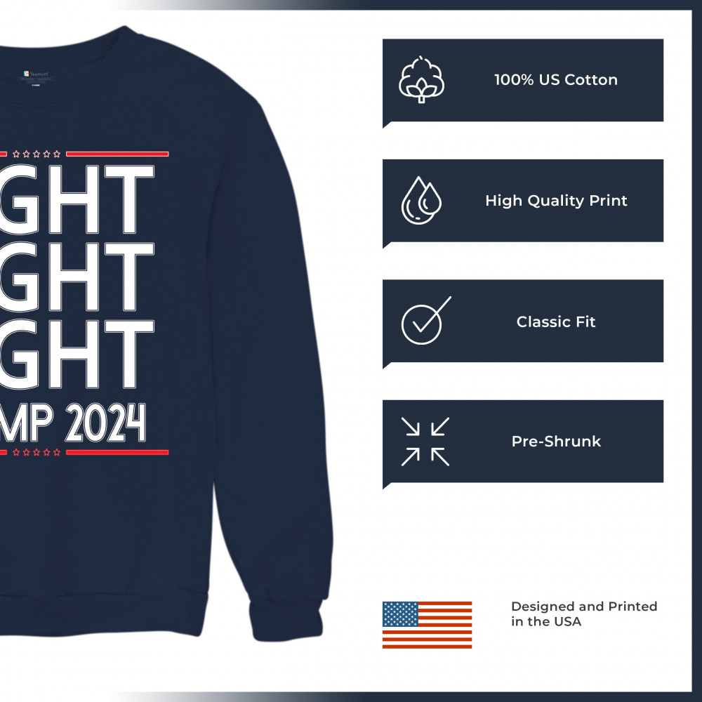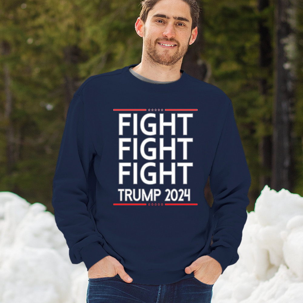 Show your Trump 2024 support with this bold "Fight Fight Fight" design. Perfect for rallies and everyday wear. Stand with America!