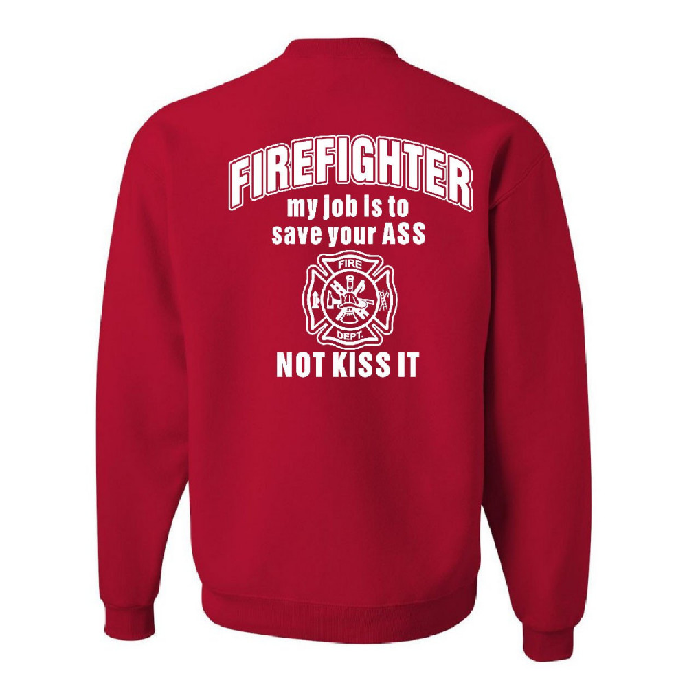 FIREFIGHTER MY JOB IS TO SAVE YOUR ASS crew neck sweatshirt funny red