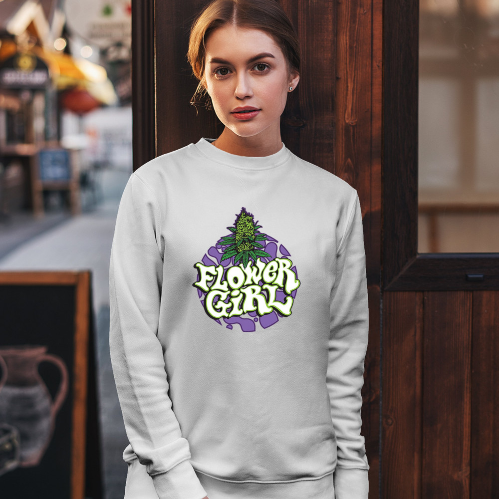 Bold Flower Girl cannabis design with retro vibes, 420 style, and stoner flair. Fun gift for weed lovers and free-spirited hippie fans.
