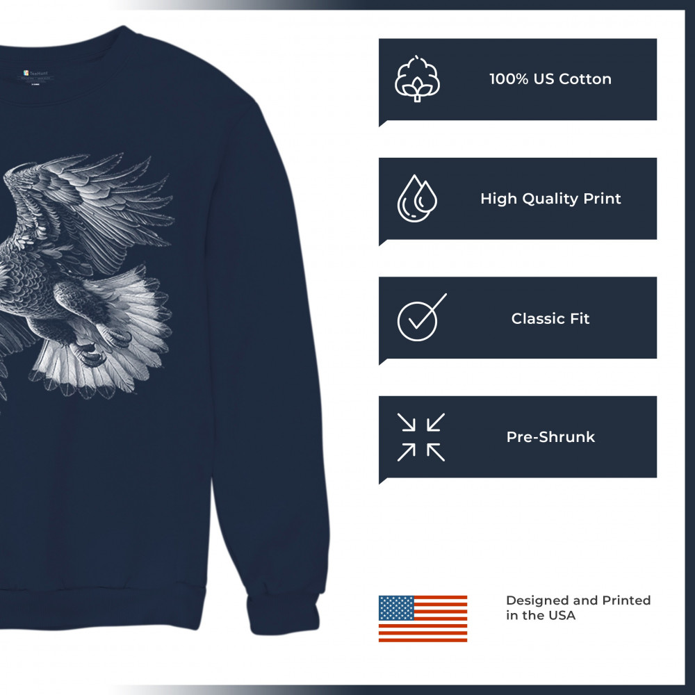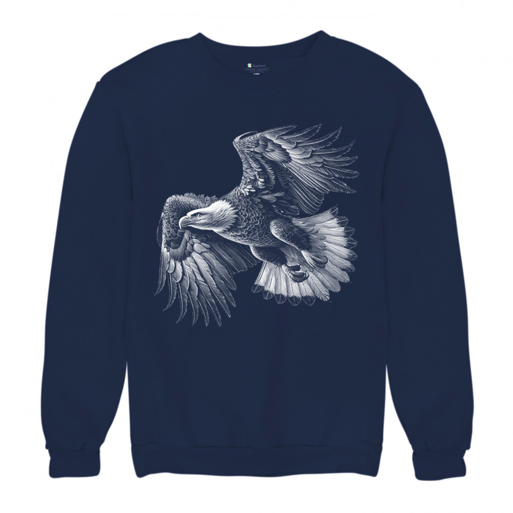 Celebrate American pride with this soaring bald eagle design. With wings extended and monochrome detail that symbolizes liberty and strength, it's perfect for patriots, veterans, and national holiday wear. A timeless tribute to freedom, this design is ideal for memorial events, rallies, and anyone who honors the red, white, and blue.