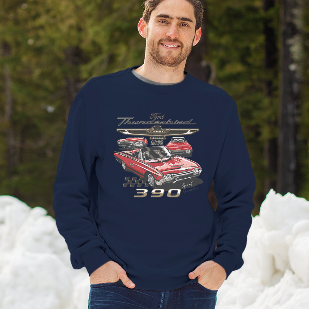 Celebrate the style and power of the 1963 Ford Thunderbird with this striking design featuring the classic 390 V8 Sport Roadster. With its unmistakable red finish and vintage detailing, this piece captures the heart of American auto history. A perfect tribute for Ford fans, car collectors, and retro cruising lovers.
