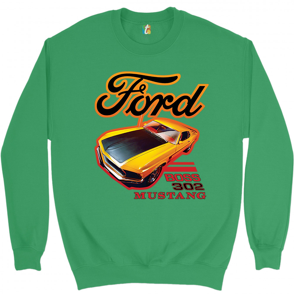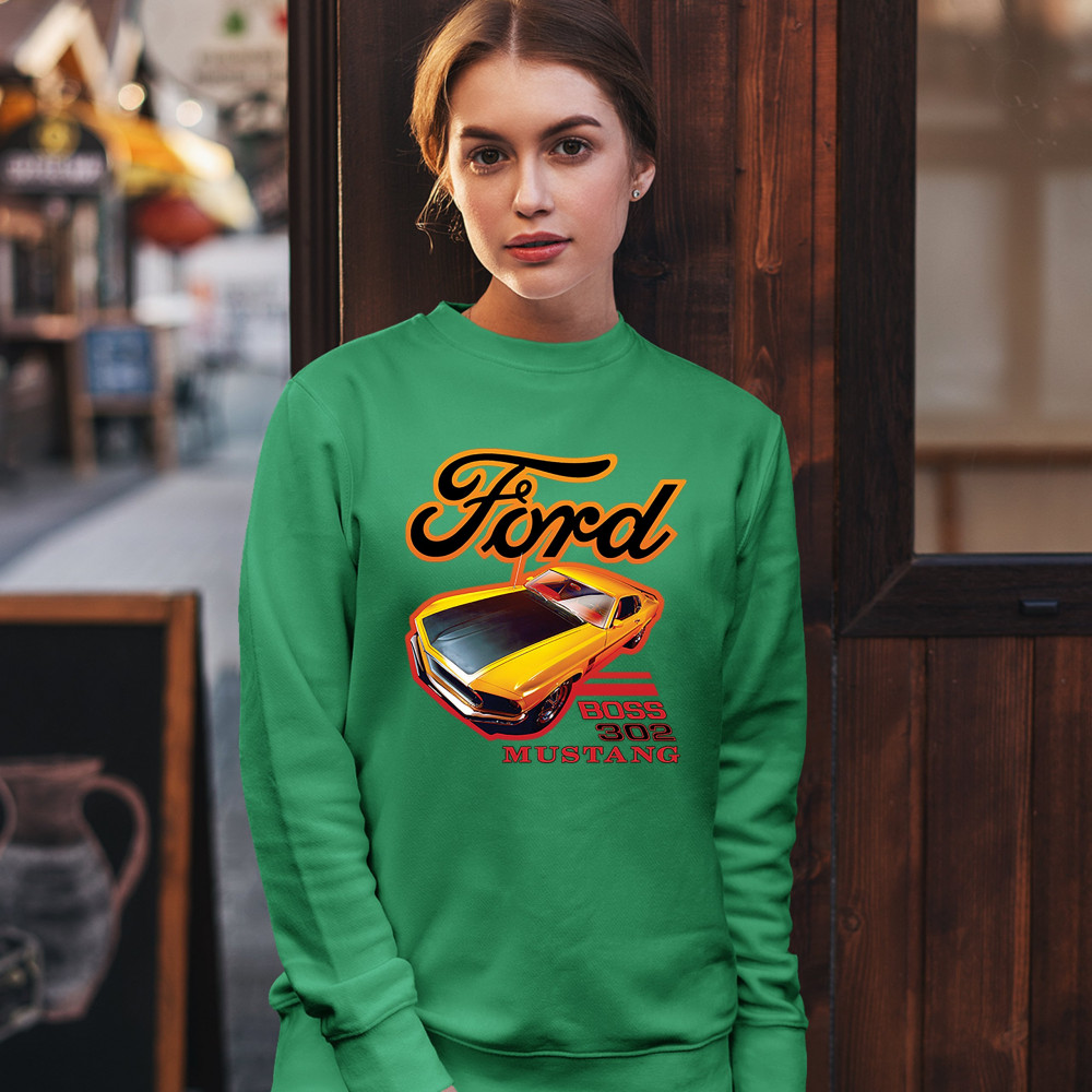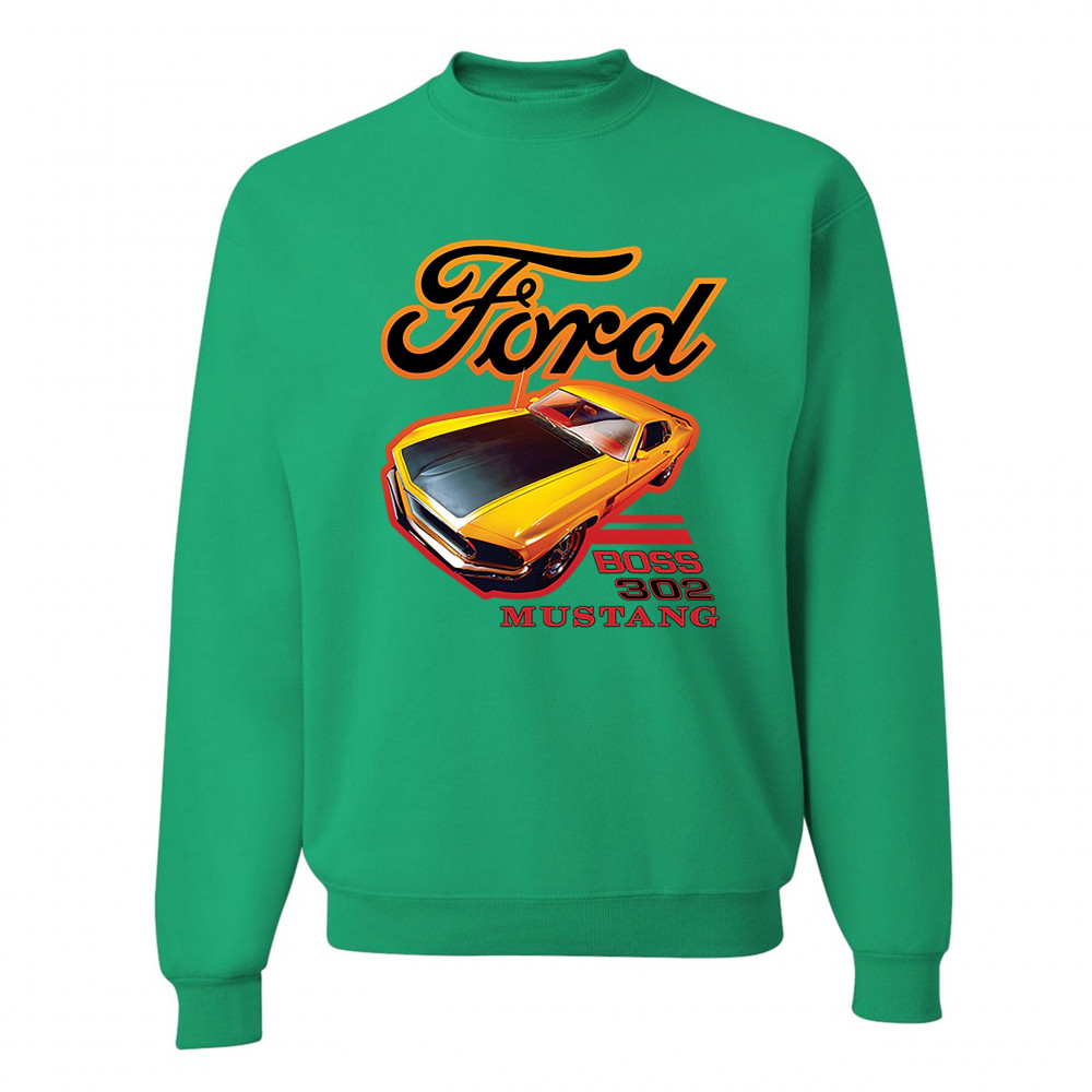 FORD BOSS 302 MUSTANG sweatshirt vintage american muscle car licensed crewneck green