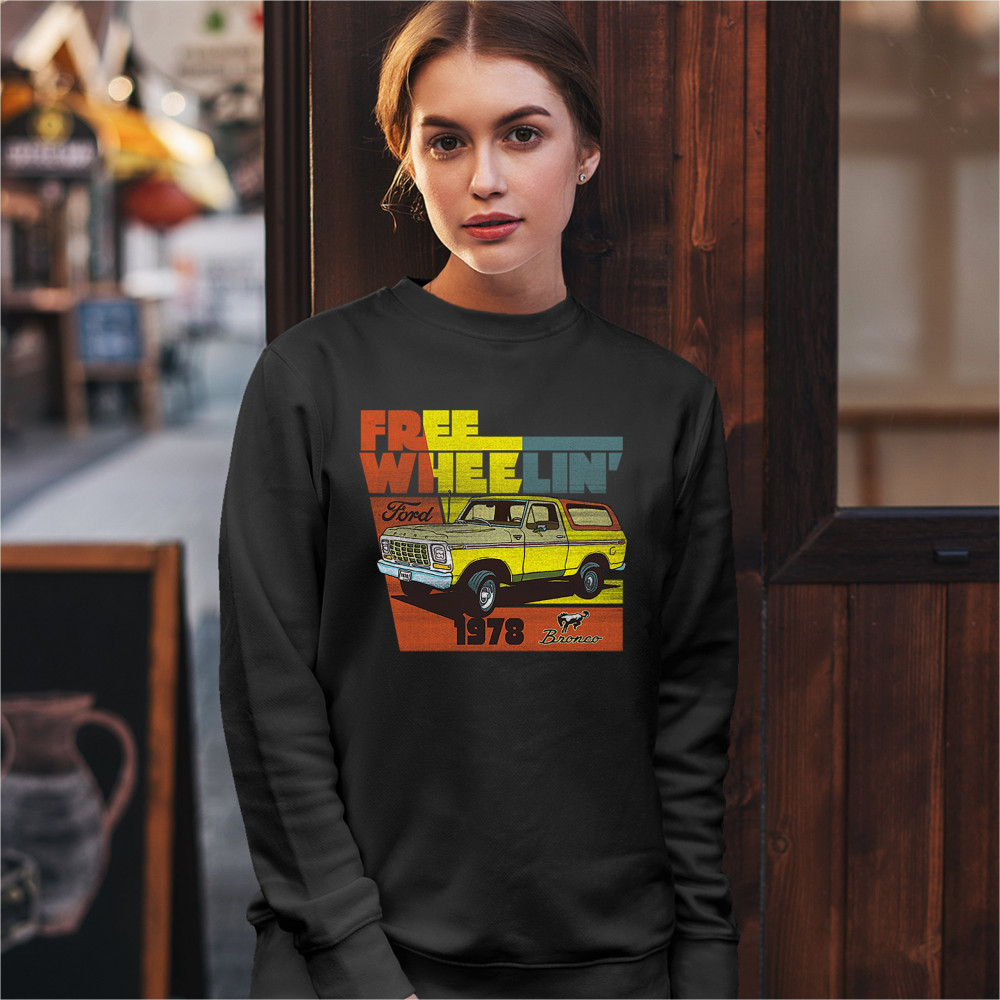 FORD BRONCO 1978 sweatshirt free wheelin' offroad truck suv licensed crewneck black
