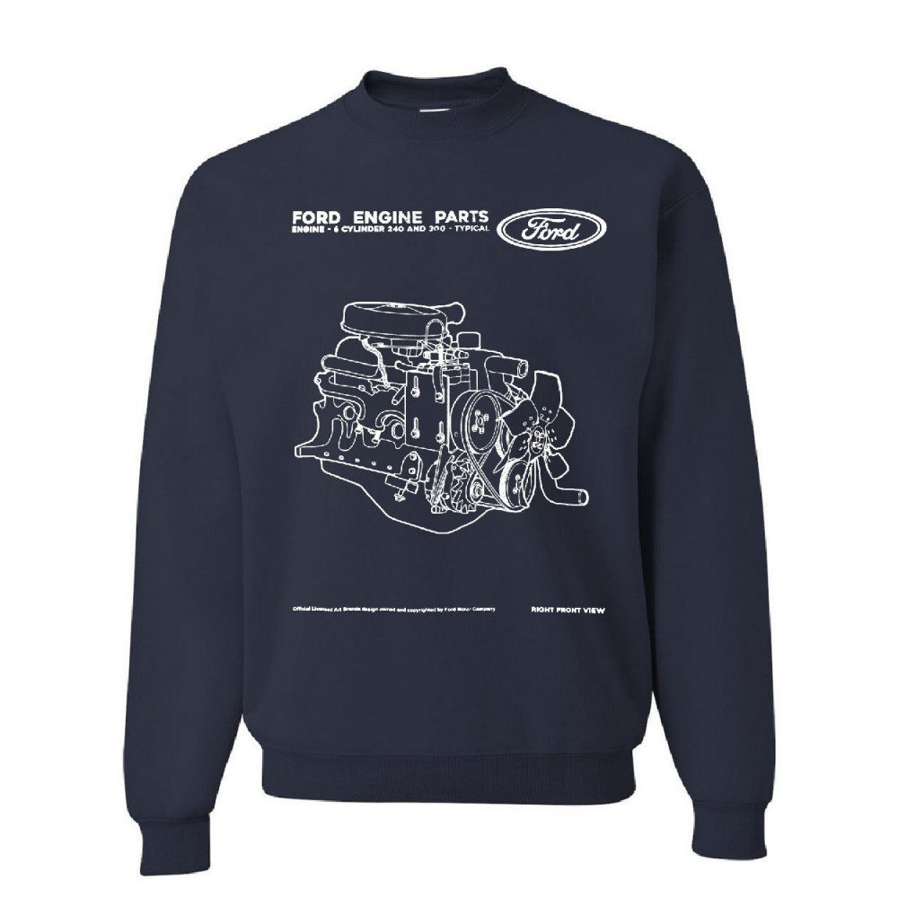 FORD ENGINE PARTS sweatshirt 6 cylinder motor sweater navy blue