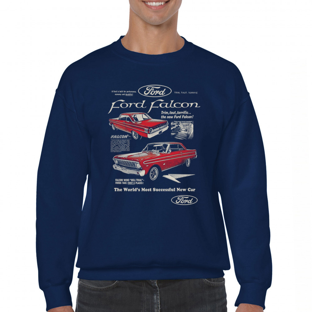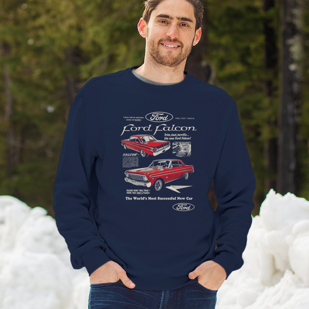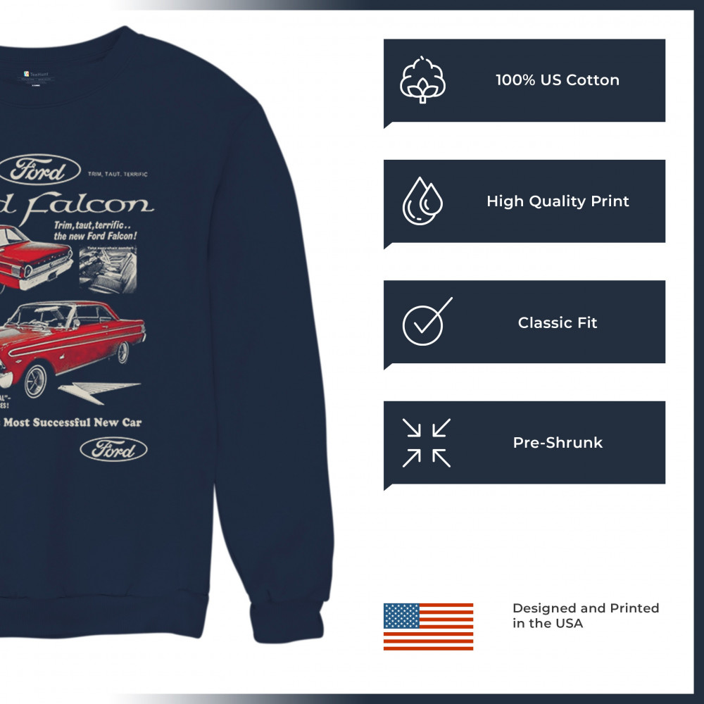 Showcase your love for classic cars with this Ford Falcon retro poster design. A vintage tribute featuring iconic 60s and 70s styling, perfect for gearheads, auto enthusiasts, hot rod fans, and collectors of American classics. Affordable everyday apparel packed with old school horsepower.