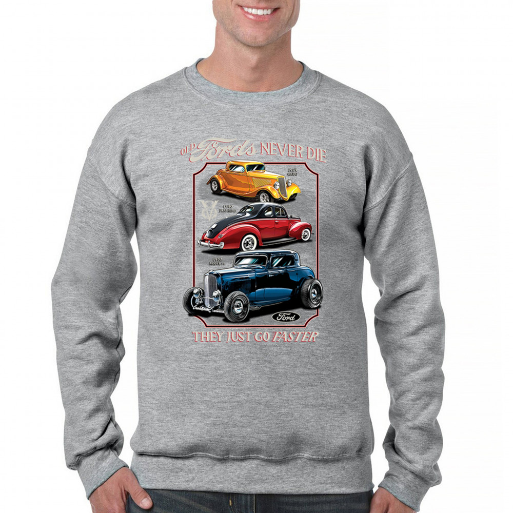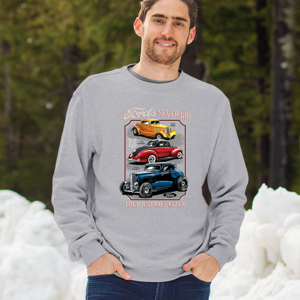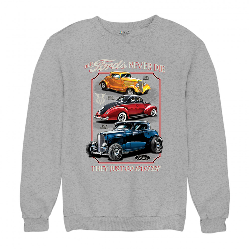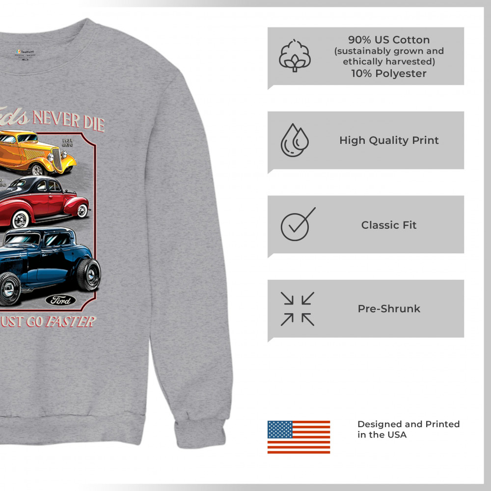 This retro design features three legendary Ford hot rods from the 1930s and 1940s, boldly rendered in a tribute to American street rod history. Ideal for muscle car lovers, vintage performance fans, and classic car culture enthusiasts who appreciate timeless speed. A must-have for cruise nights, garage hangs, and car shows.
