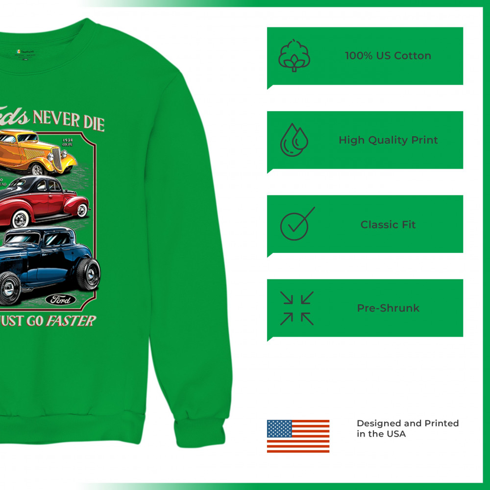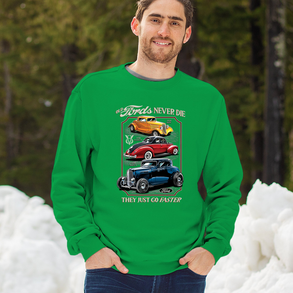 FORD HOT ROD LEGENDS sweatshirt 1932 model b 1934 coupe '40 flathead crewneck green
