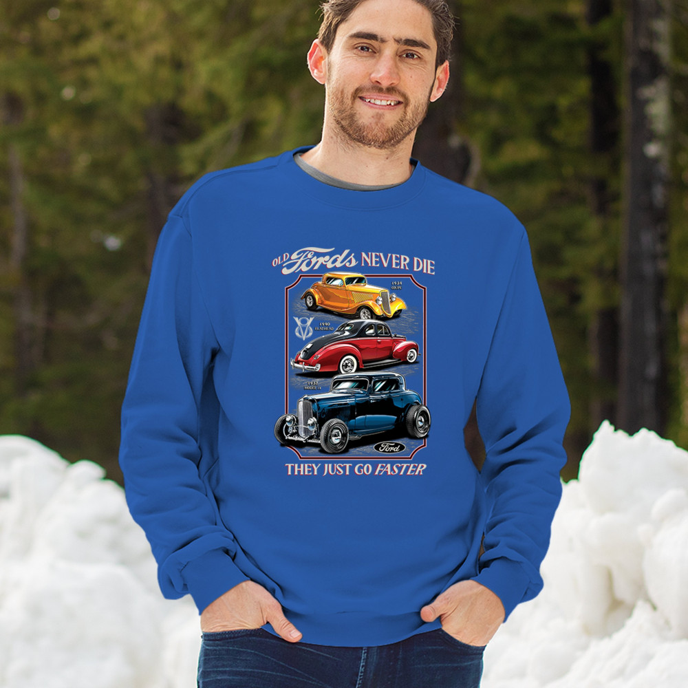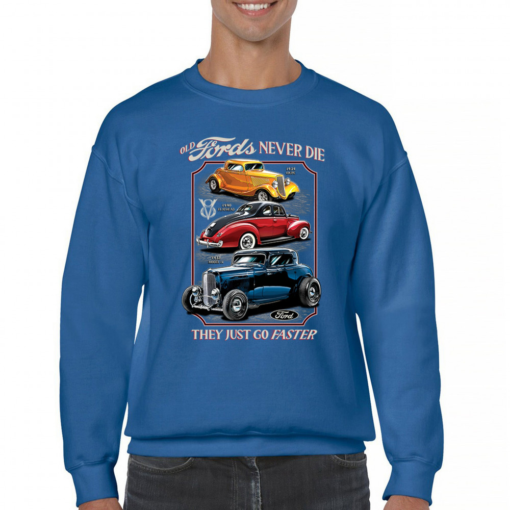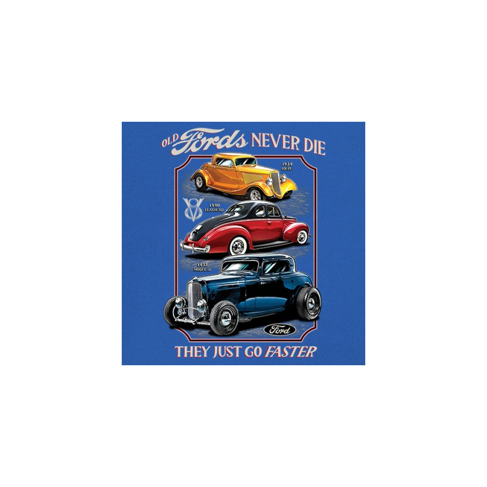 This retro design features three legendary Ford hot rods from the 1930s and 1940s, boldly rendered in a tribute to American street rod history. Ideal for muscle car lovers, vintage performance fans, and classic car culture enthusiasts who appreciate timeless speed. A must-have for cruise nights, garage hangs, and car shows.