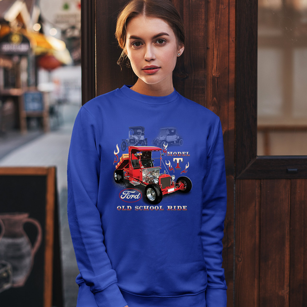 FORD MODEL T OLD SCHOOL RIDE sweatshirt vintage hot rod licensed crewneck royal blue