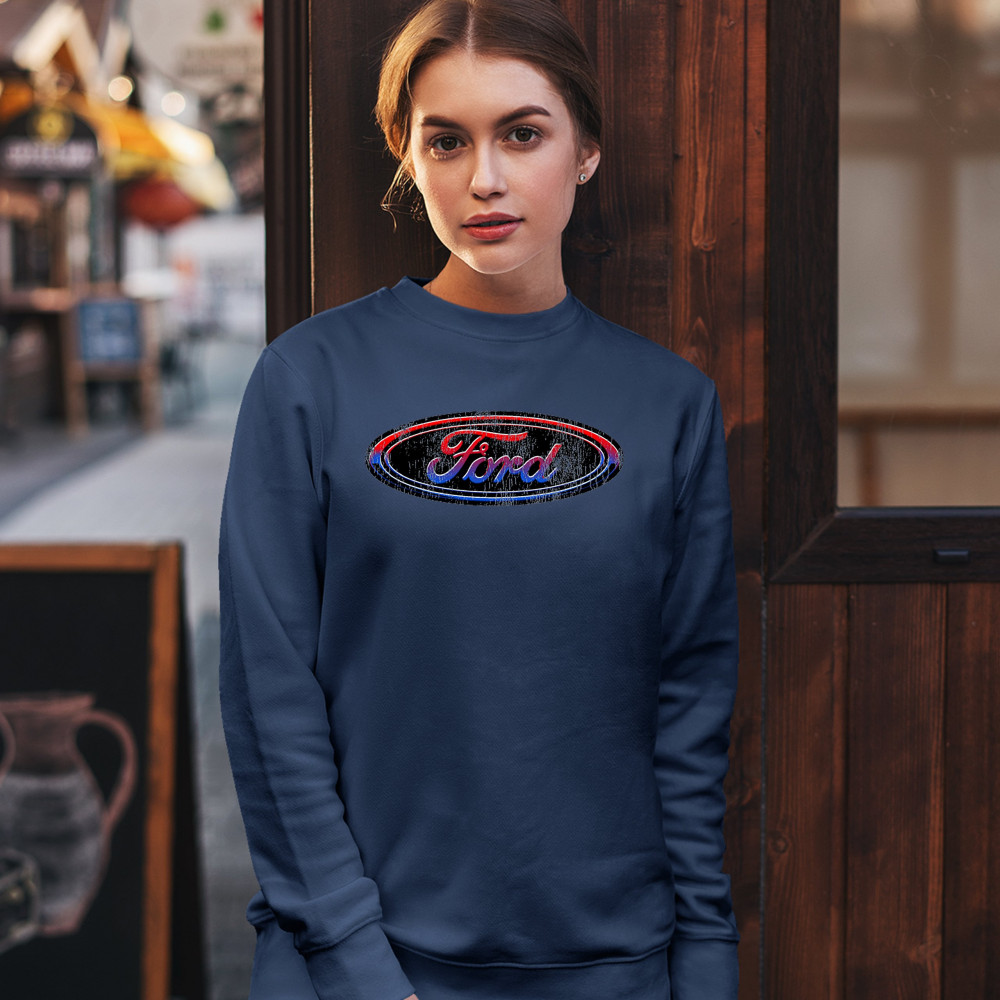 FORD MOTOR COMPANY LOGO sweatshirt american made cars licensed crewneck navy blue
