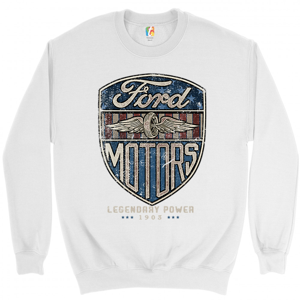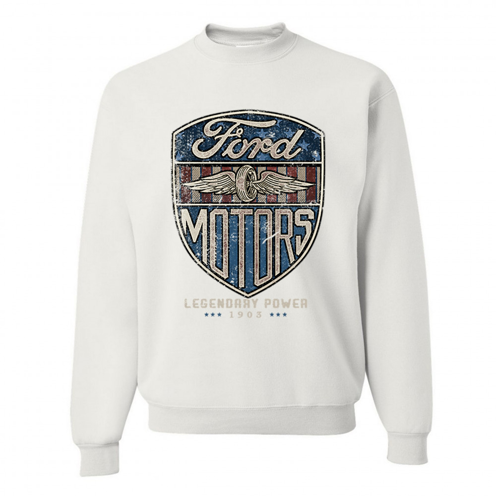 FORD MOTORS LEGENDARY POWER sweatshirt fomoco licensed automotive crewneck white