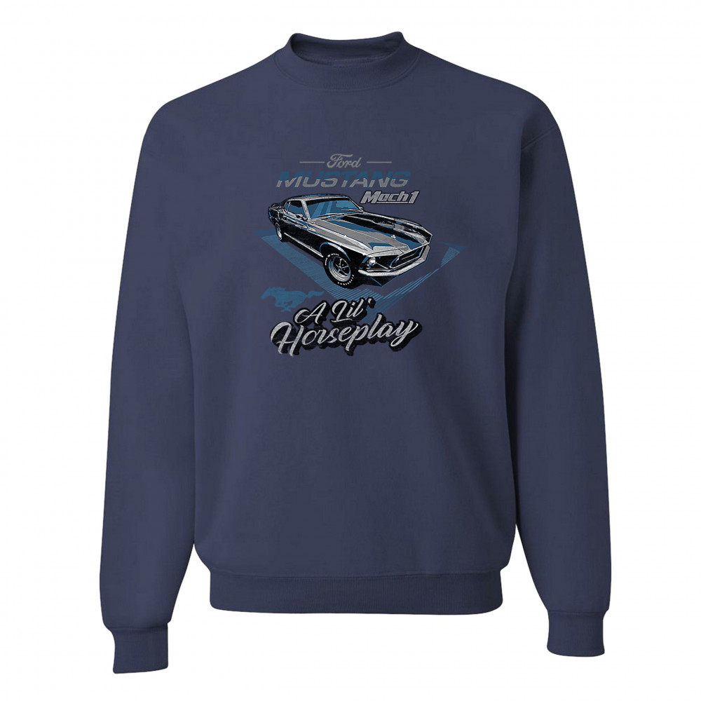 FORD MUSTANG MACH 1 A LIL' HORSEPLAY sweatshirt muscle car licensed crewneck navy blue