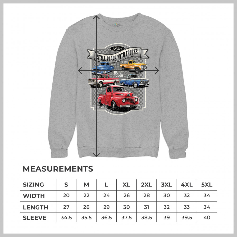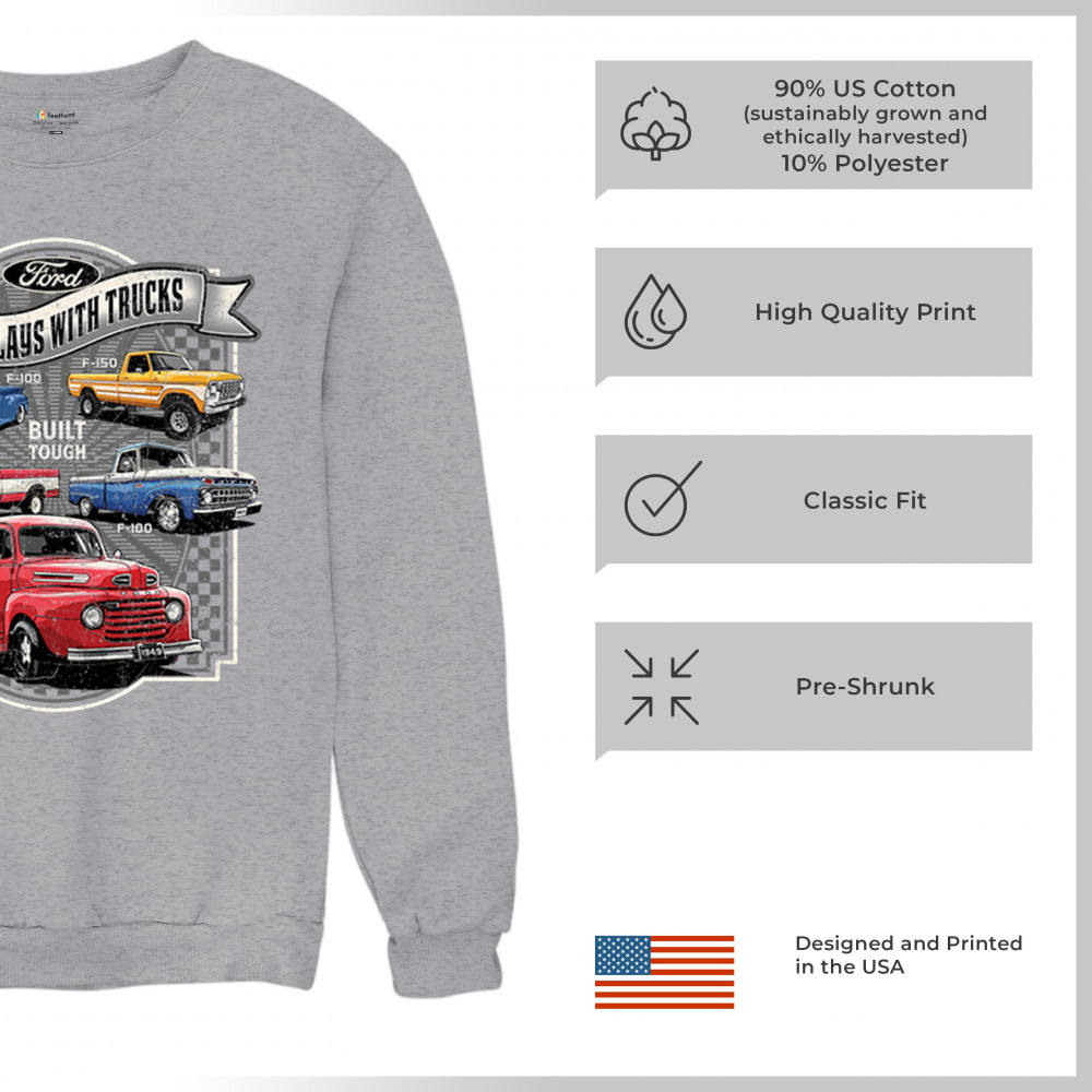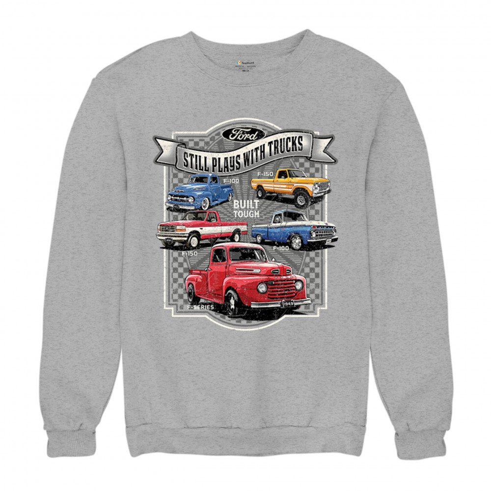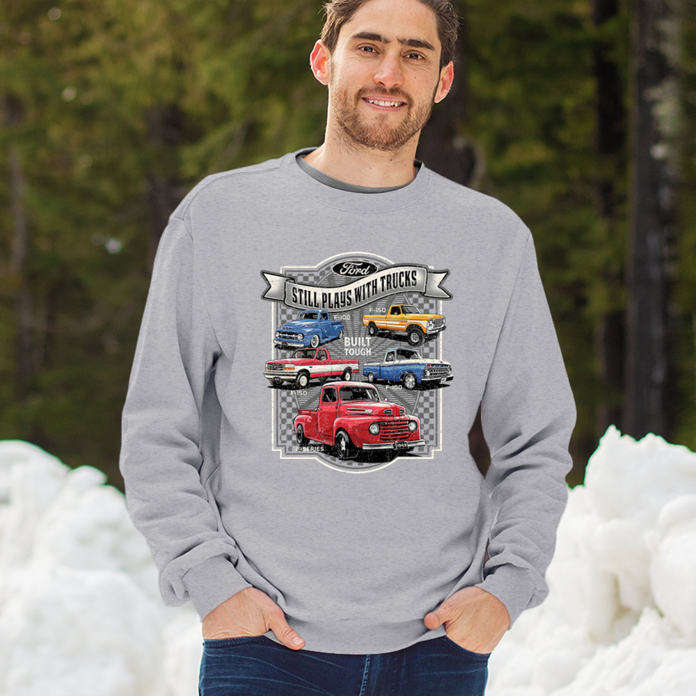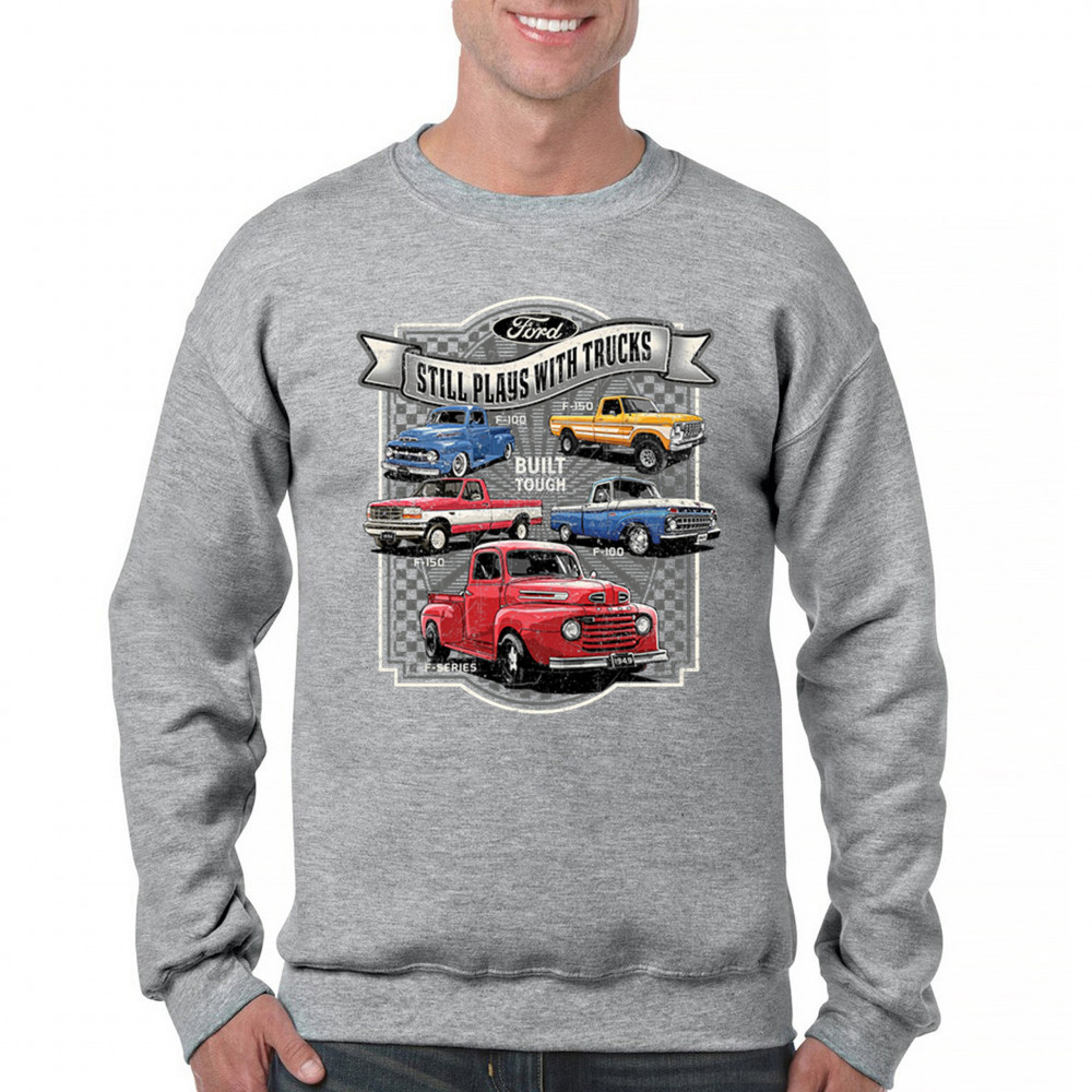 FORD STILL PLAYS WITH TRUCKS sweatshirt f100 f150 pickup built tough crewneck gray