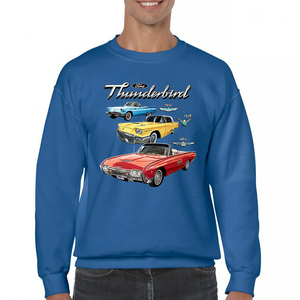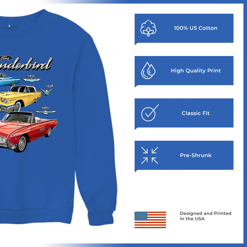Iconic Ford Thunderbird design with 1957, 1958, and 1963 models. A vintage tribute for car collectors and American muscle fans.