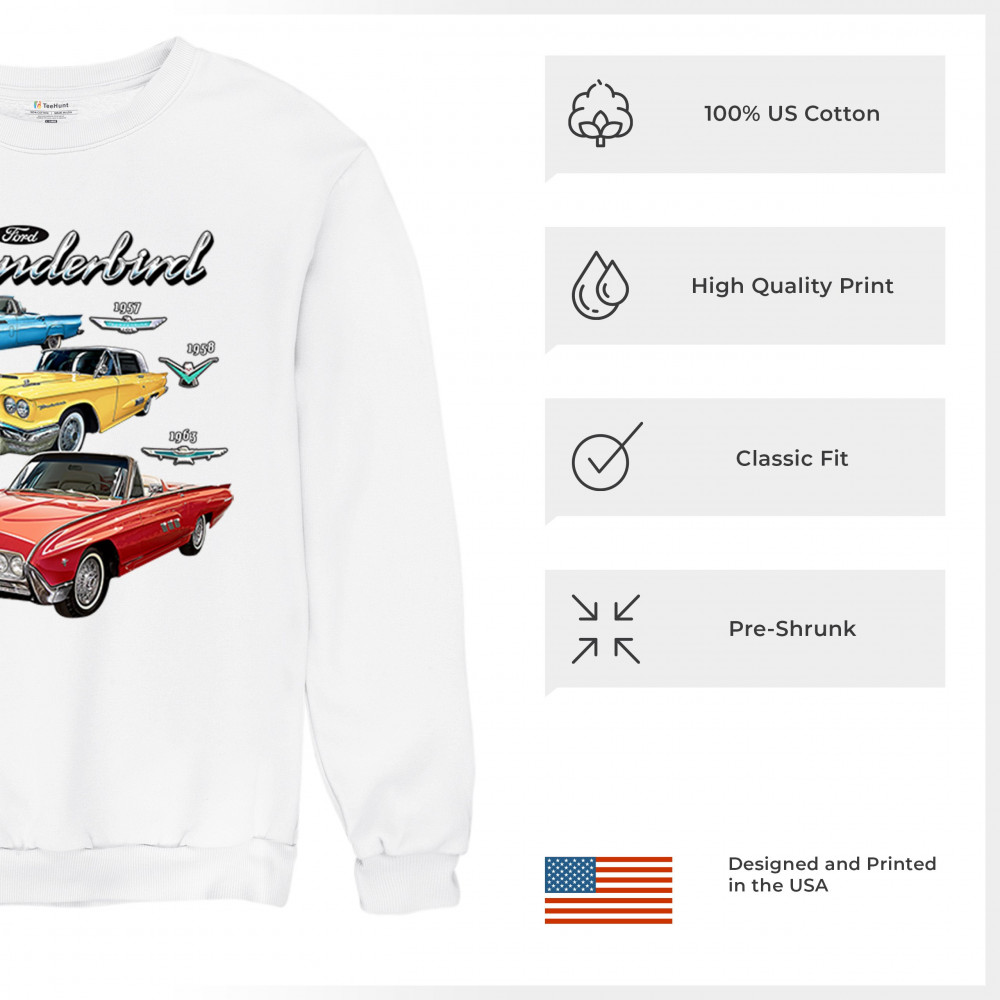 Iconic Ford Thunderbird design with 1957, 1958, and 1963 models. A vintage tribute for car collectors and American muscle fans.