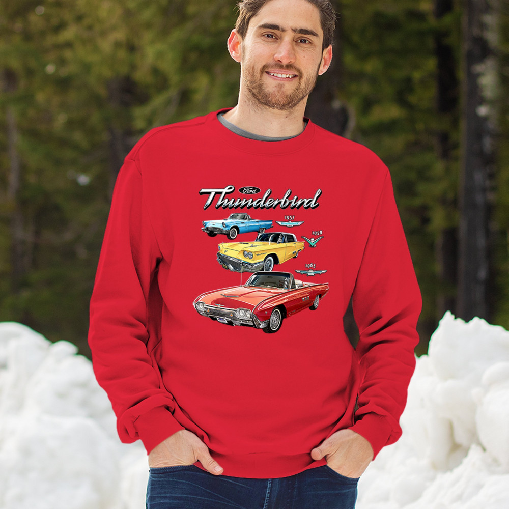 Iconic Ford Thunderbird design with 1957, 1958, and 1963 models. A vintage tribute for car collectors and American muscle fans.