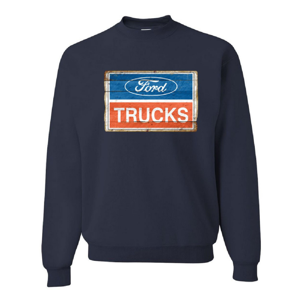 FORD TRUCKS OLD SIGN sweatshirt licensed ford built tough navy blue