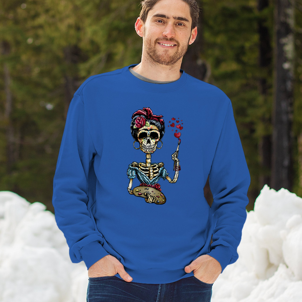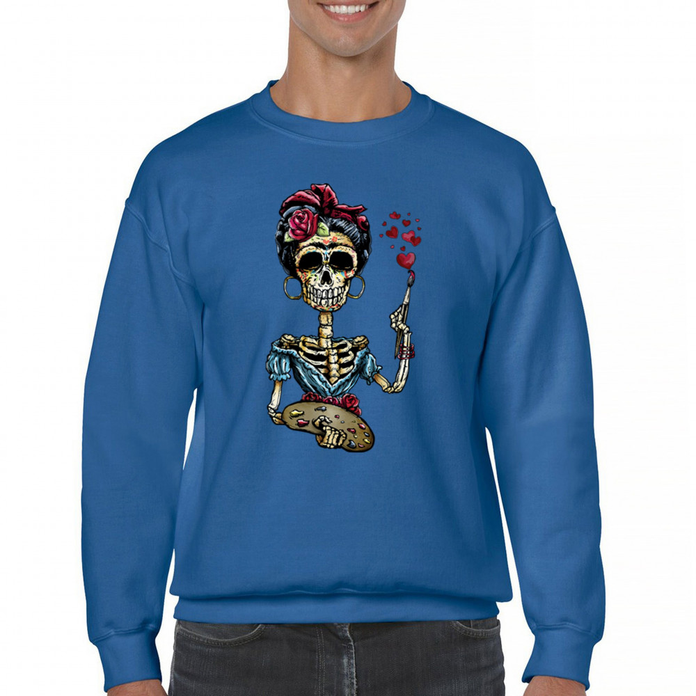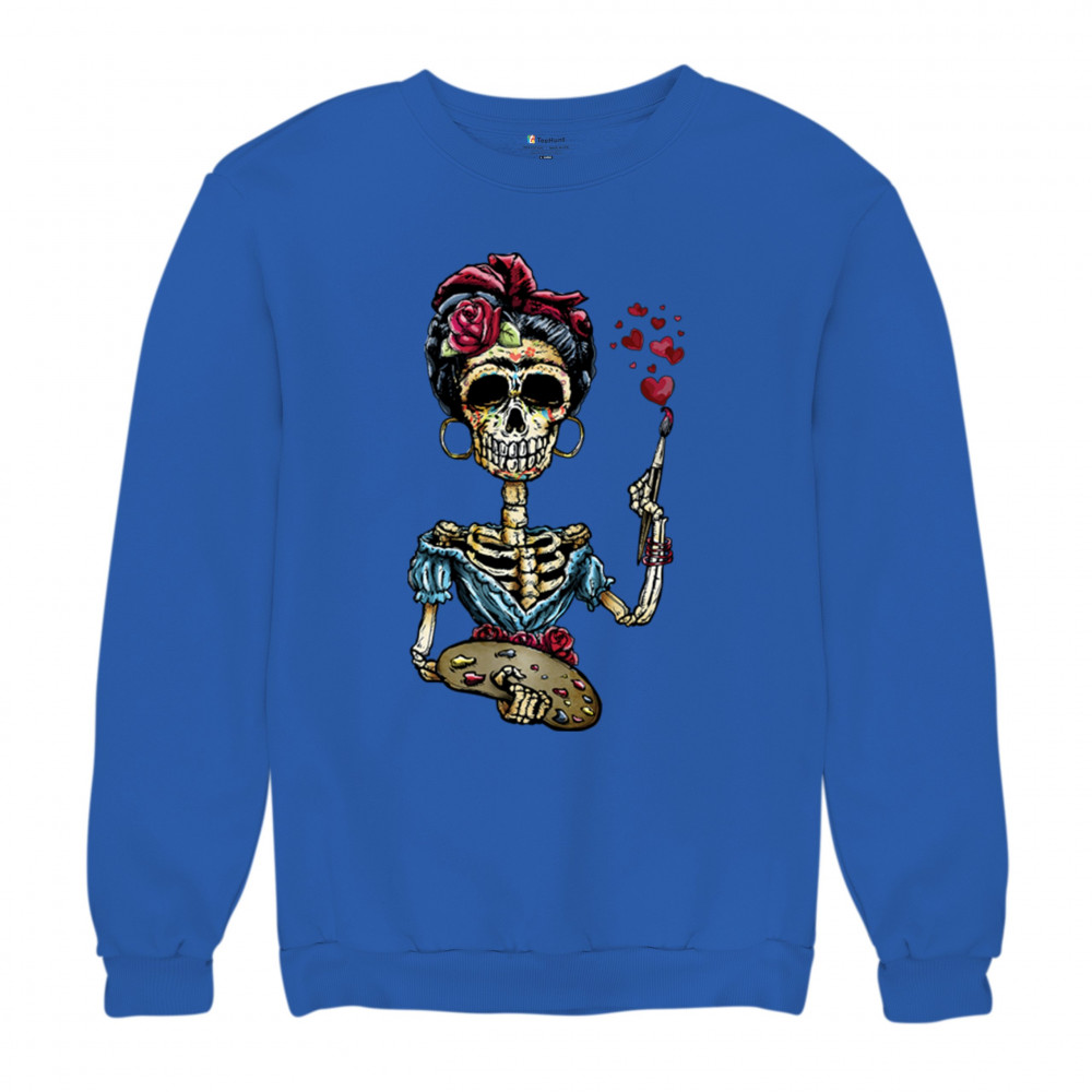 FRIDA KAHLO SUGAR SKULL sweatshirt calavera mexican day of the dead crewneck royal blue