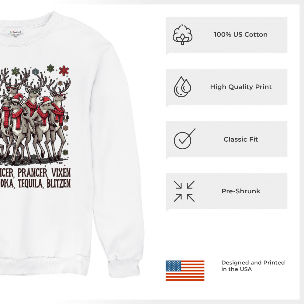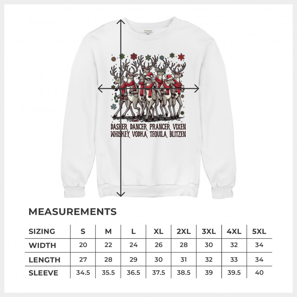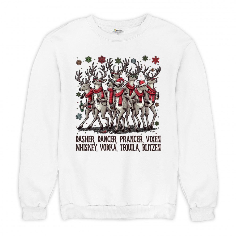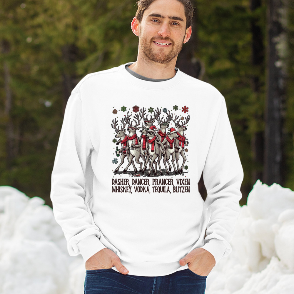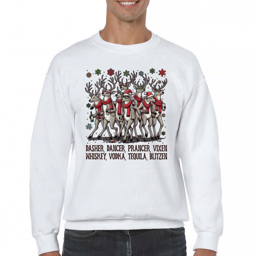 FUNNY DRINKING REINDEER crewneck sweatshirt christmas holiday spirit festive white