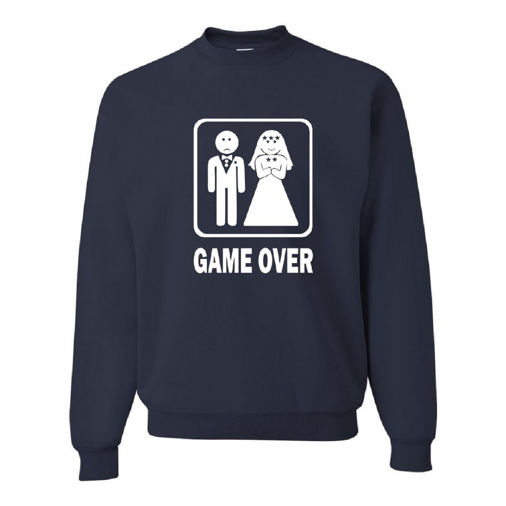 GAME OVER FUNNY crew neck sweatshirt groom and bride wedding navy blue