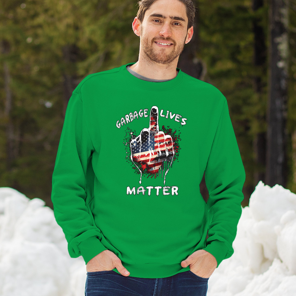The "Garbage Lives Matter" design is a fearless expression of American values and pride. With the American flag as its centerpiece, this bold and patriotic design speaks volumes to Trump supporters, conservatives, and those who believe in the people's mandate. Join the fight for America First, never surrender, and celebrate the Red Wave movement with this striking statement piece.