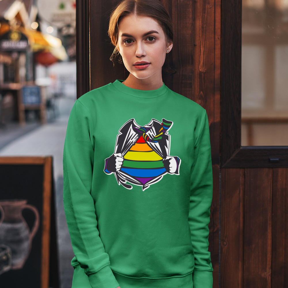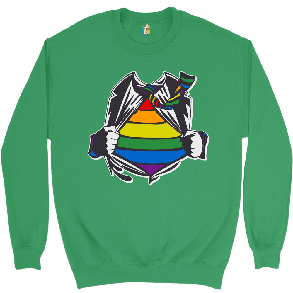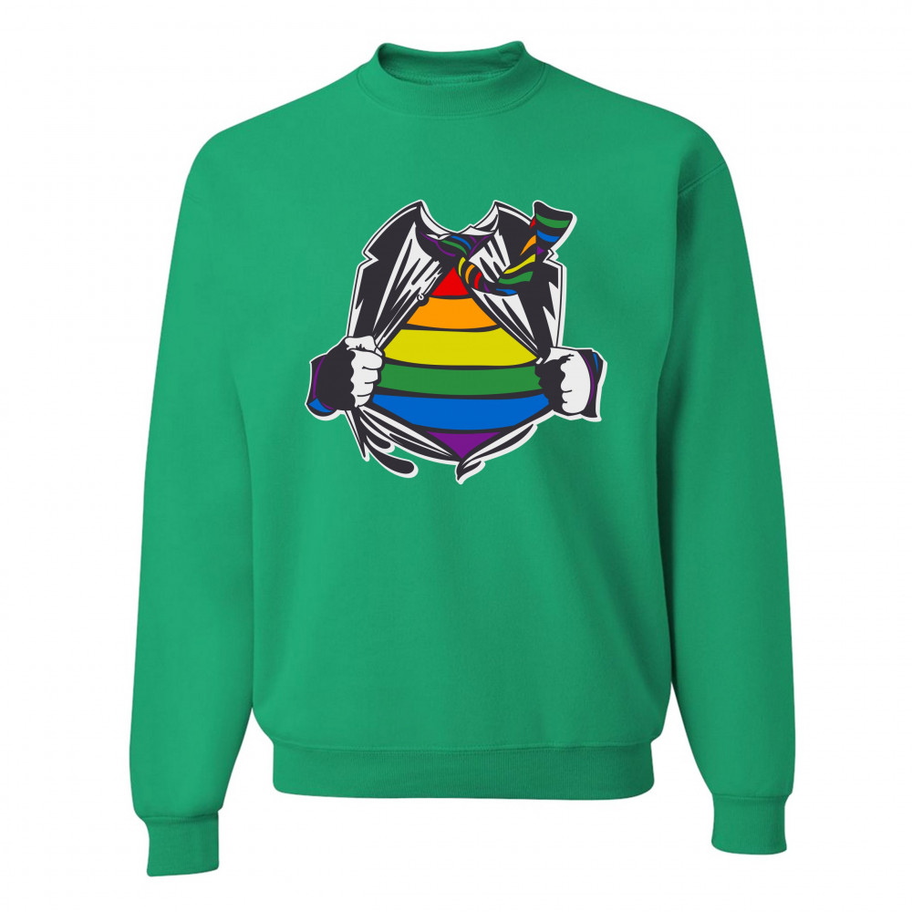 GAY SUPERHERO PARODY sweatshirt lesbian bi transgender pride rainbow crewneck green