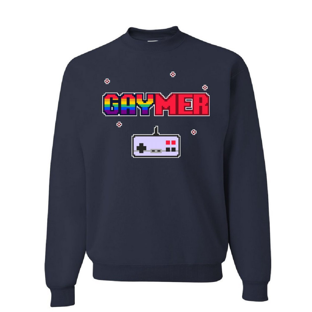 QUEER GAYMER CONTROLLER gaymer sweatshirt lgbt queer rainbow gay gaming console controller sweater navy blue