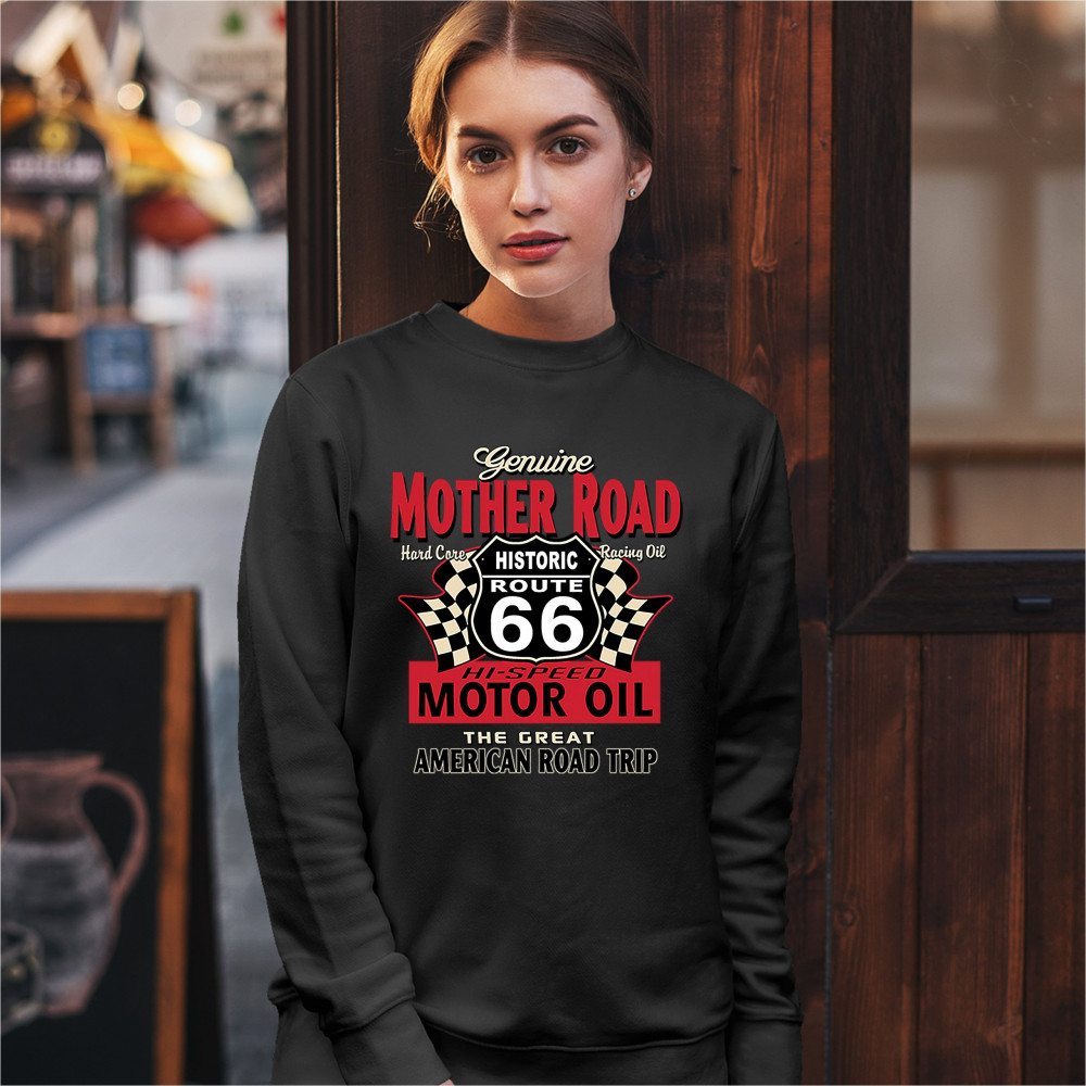 GENUINE MOTHER ROAD HISTORIC ROUTE 66 sweatshirt american road trip crewneck black