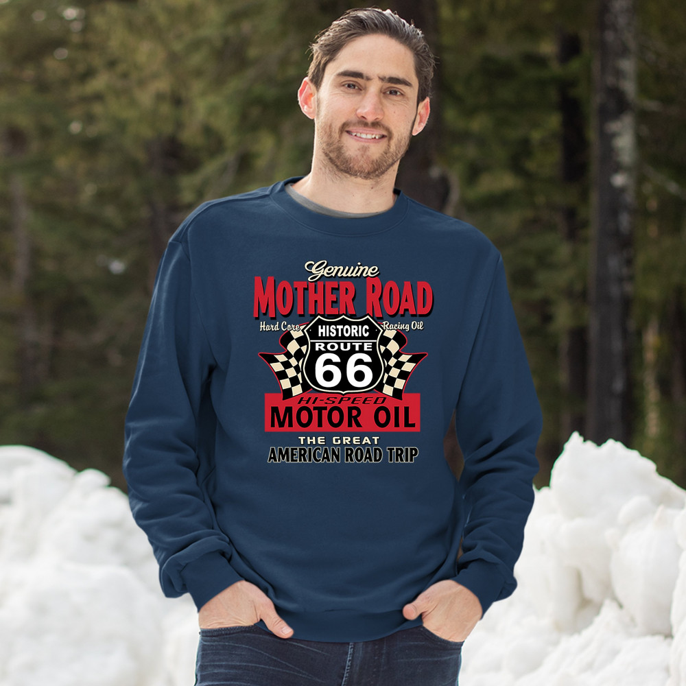 GENUINE MOTHER ROAD HISTORIC ROUTE 66 sweatshirt american road trip crewneck navy blue