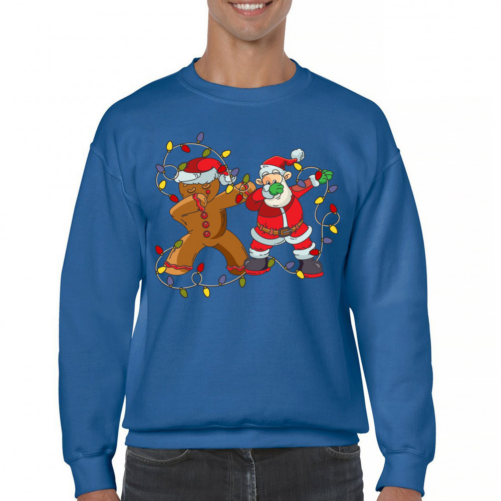 GINGERBREAD MAN AND SANTA CLAUS DAB DANCE sweatshirt merry christmas crewneck royal blue