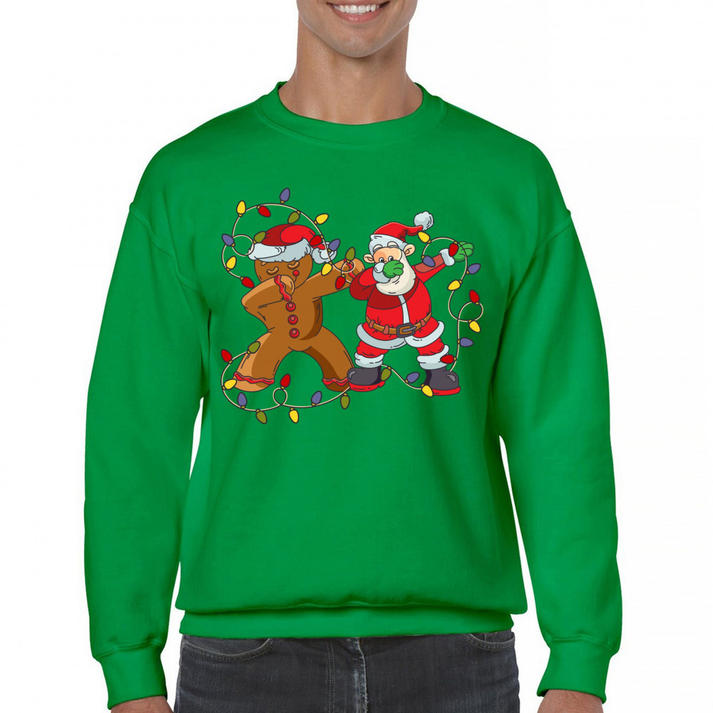 GINGERBREAD MAN AND SANTA CLAUS DAB DANCE sweatshirt merry christmas crewneck green