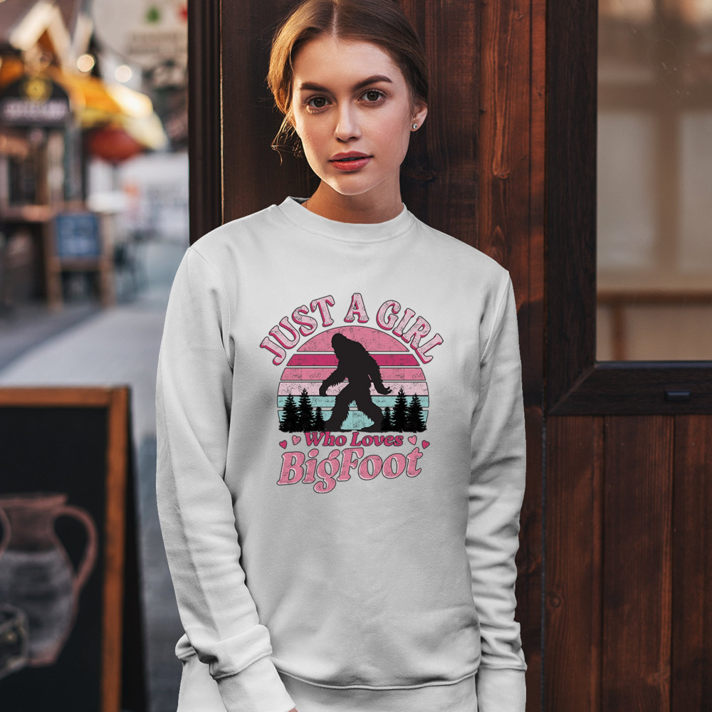 Celebrate your love for all things cryptid with this cute and retro Bigfoot design. Perfect for girls obsessed with Sasquatch, this playful graphic features a pink and teal sunset, ideal for fans, campers, explorers, and believers. A fun gift for paranormal lovers and outdoorsy adventurers alike.