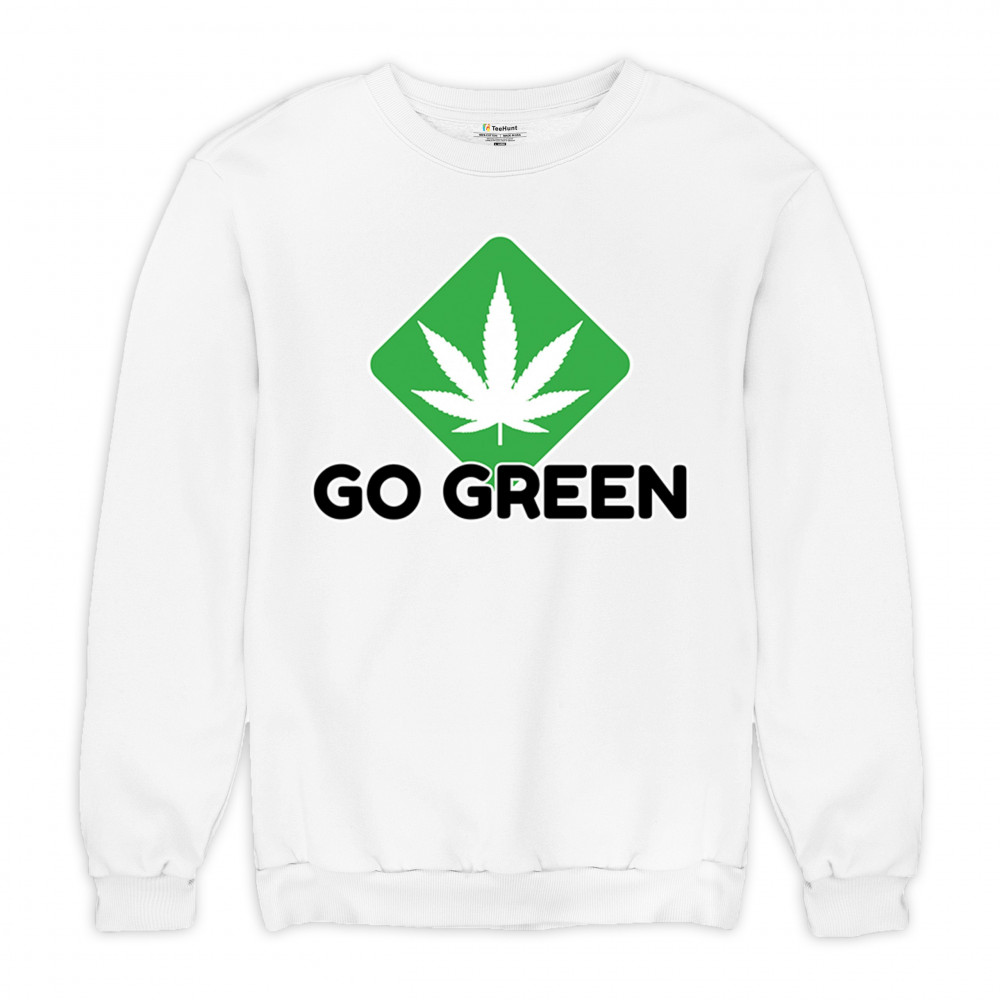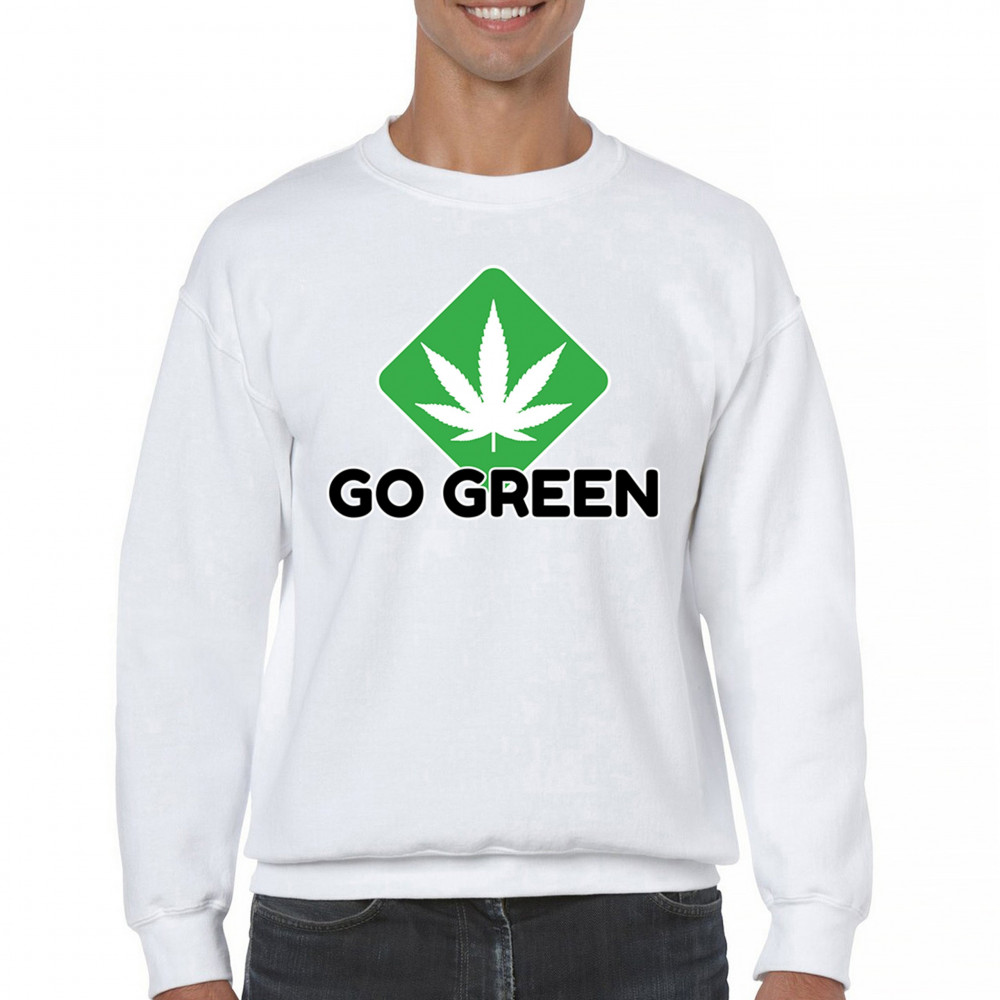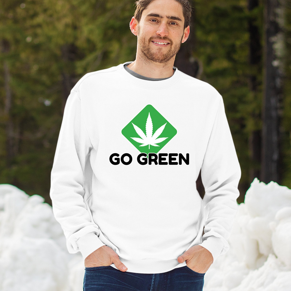 Bold Go Green design with cannabis leaf icon. Perfect for 420 fans, eco-conscious wearers, stoners, and marijuana advocates.