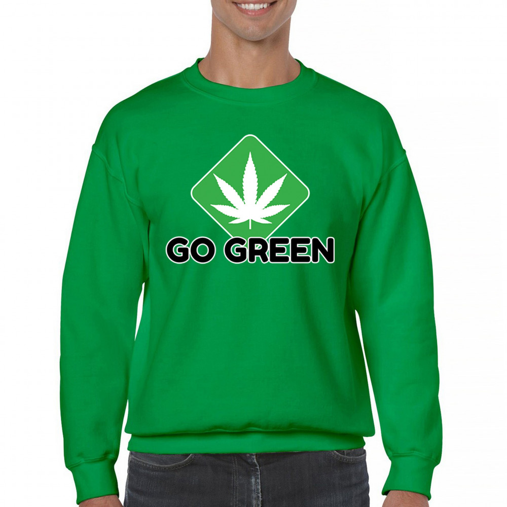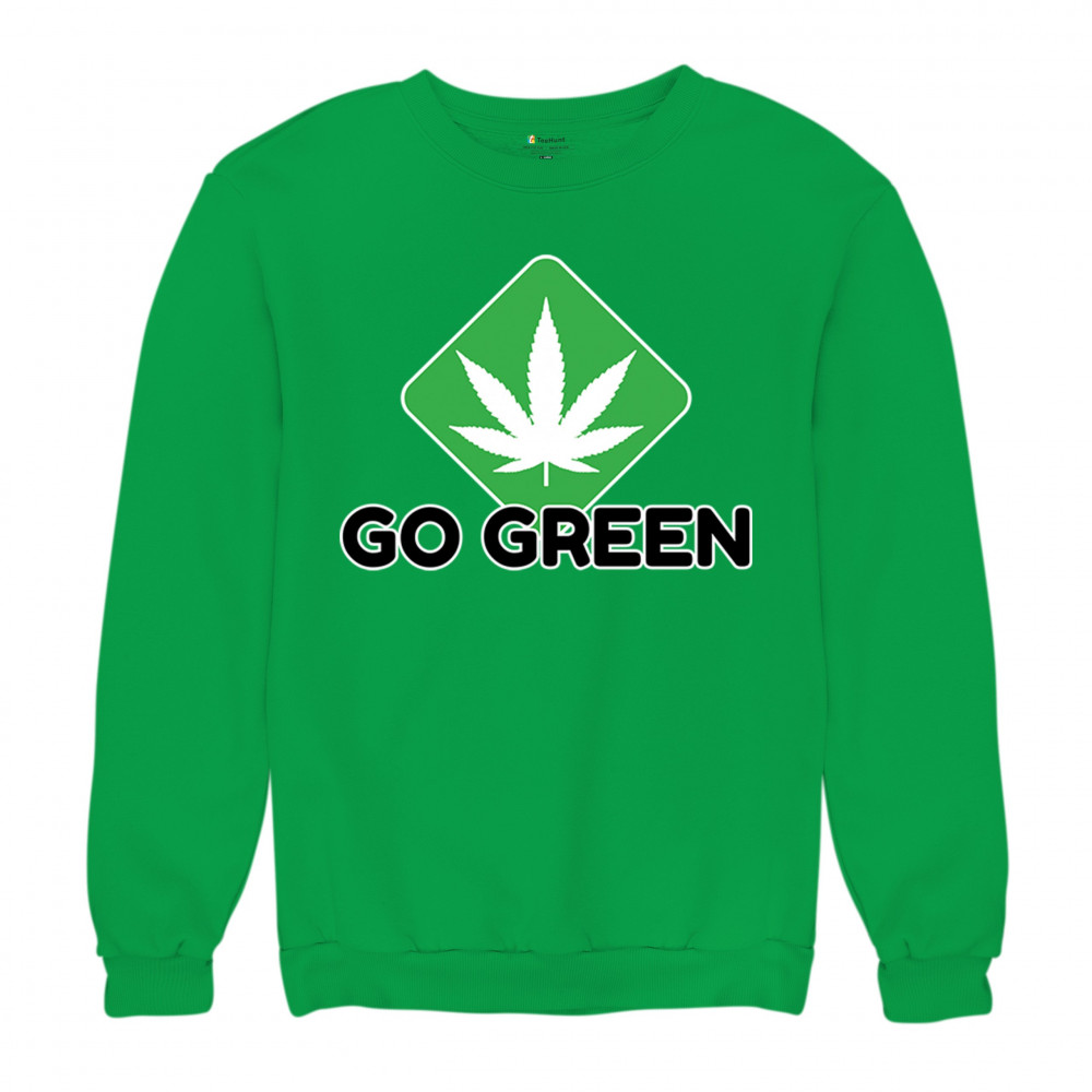 Bold Go Green design with cannabis leaf icon. Perfect for 420 fans, eco-conscious wearers, stoners, and marijuana advocates.