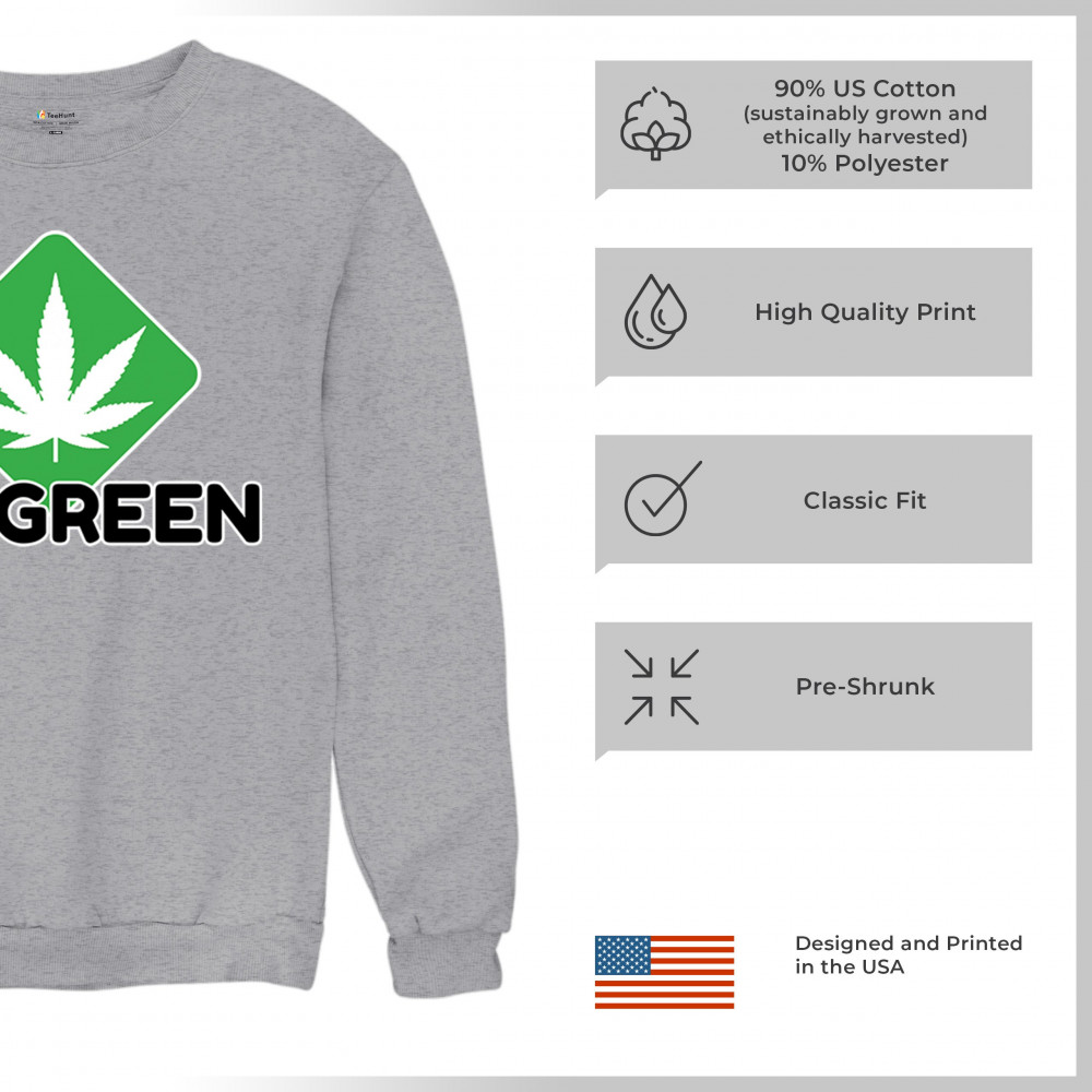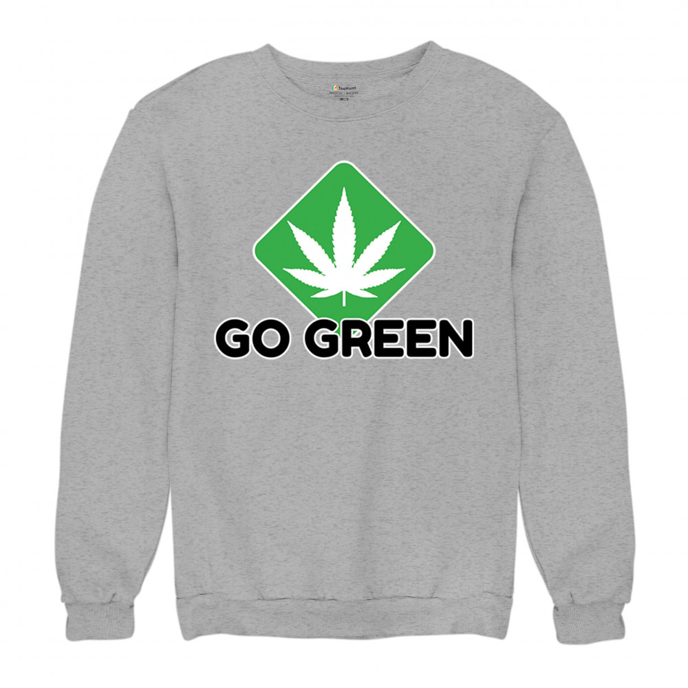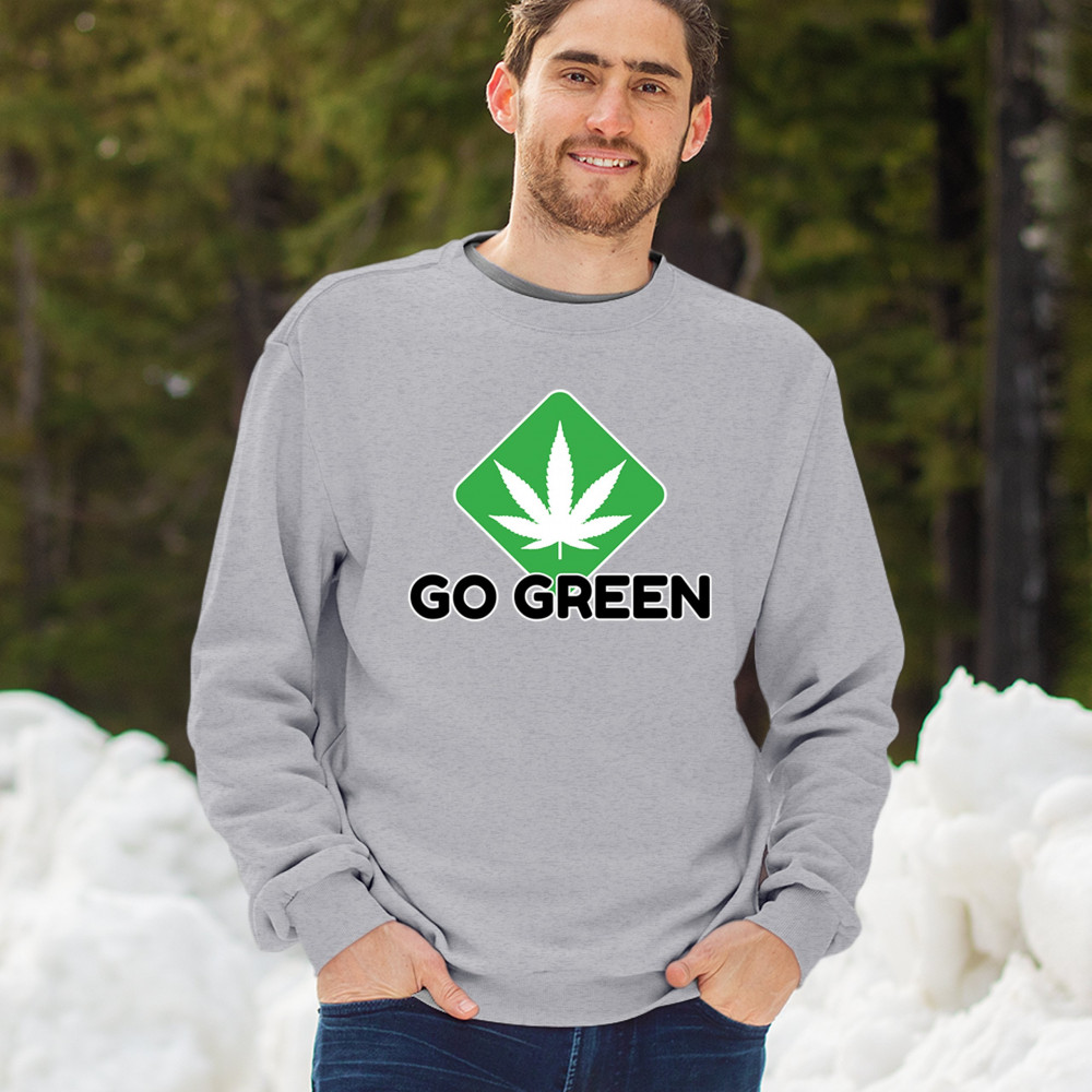 Bold Go Green design with cannabis leaf icon. Perfect for 420 fans, eco-conscious wearers, stoners, and marijuana advocates.