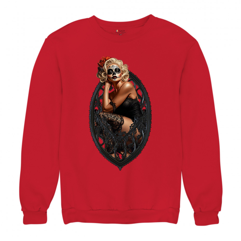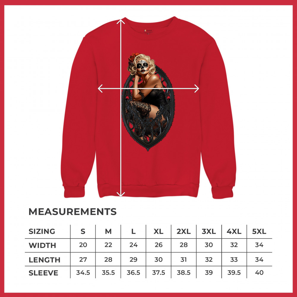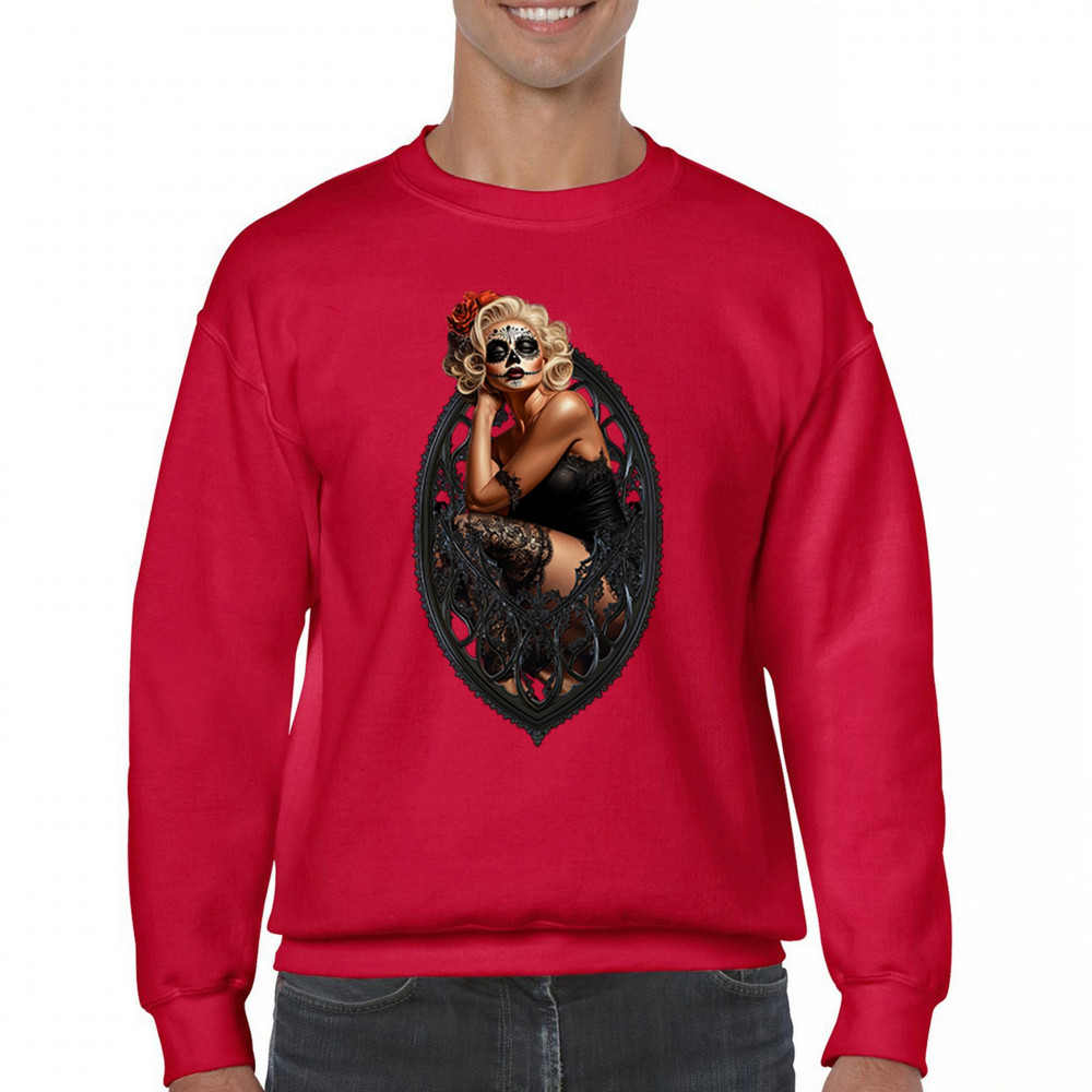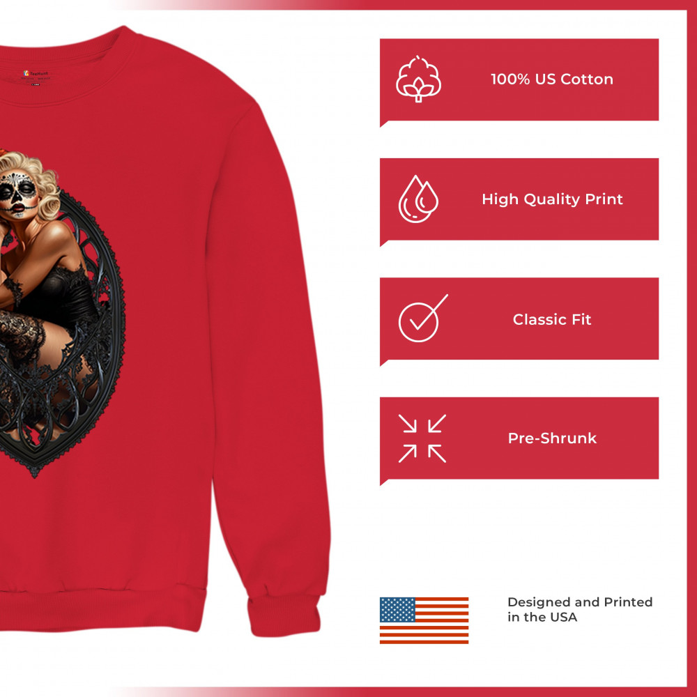 GOTHIC SUGAR SKULL PINUP sweatshirt dia de los muertos dark seductive crewneck red