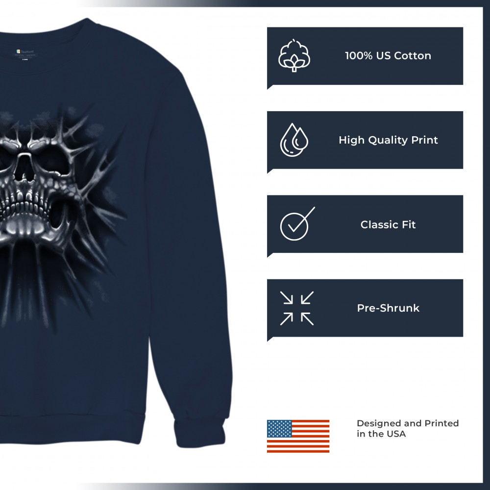 Gothic skull biker shirt with roots design. Perfect for Metalhead, Rock n Roll fans, edgy rebel fashion, and spooky Halloween vibes.