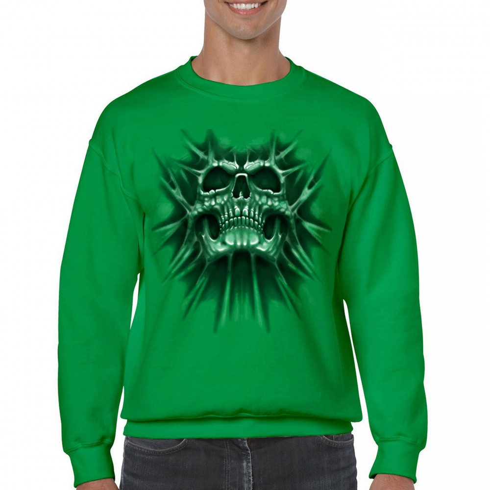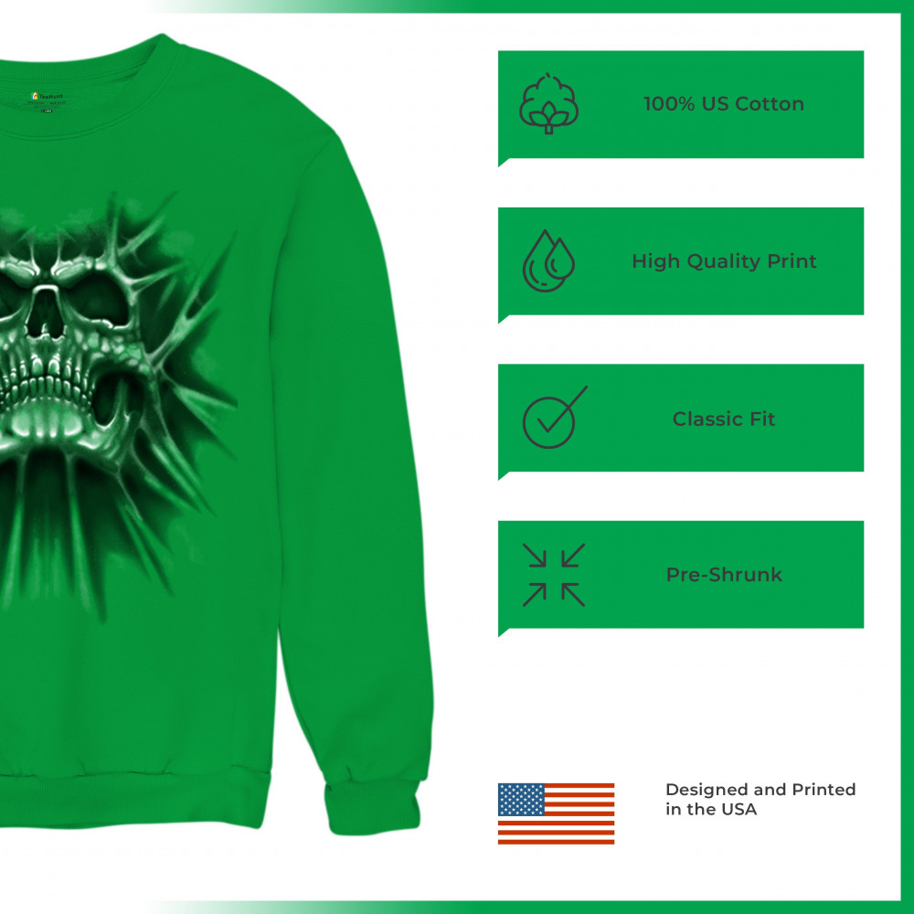 GRAY SKULL ROOTS crewneck sweatshirt gothic skeleton outlaw biker heavy metal green