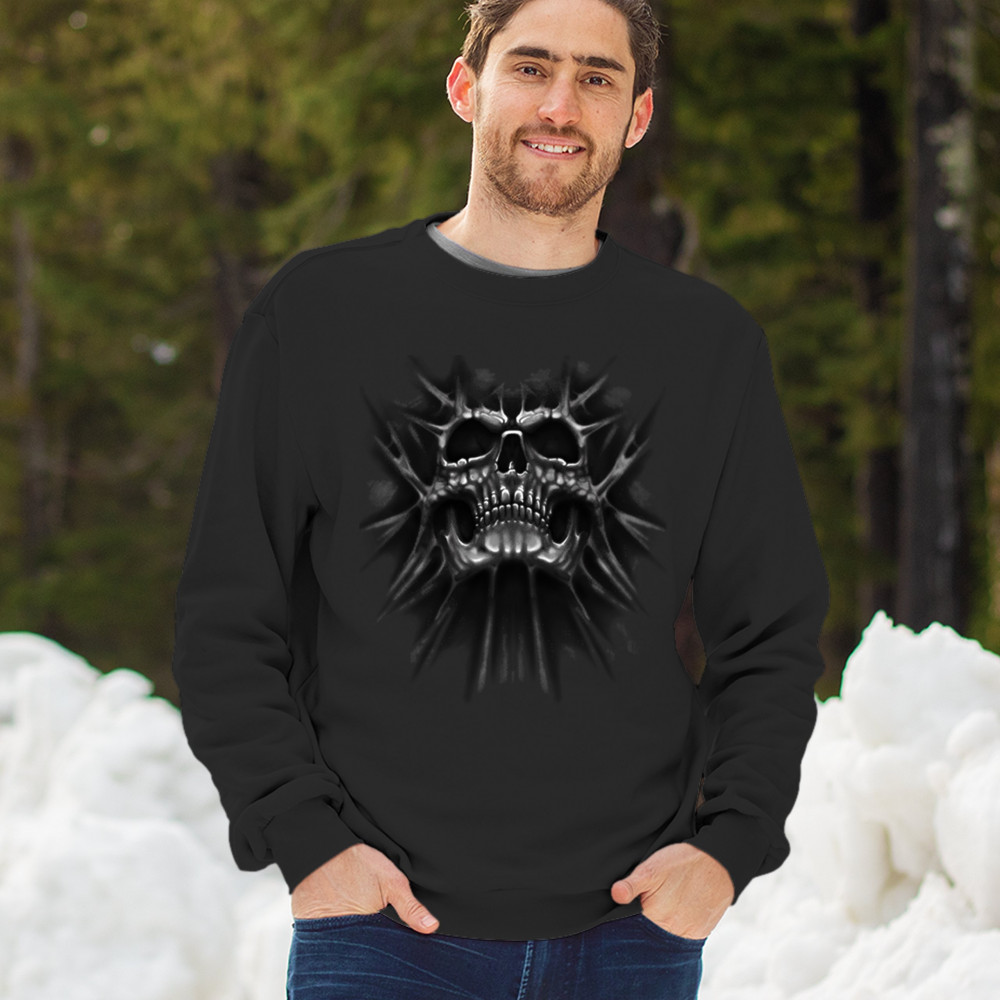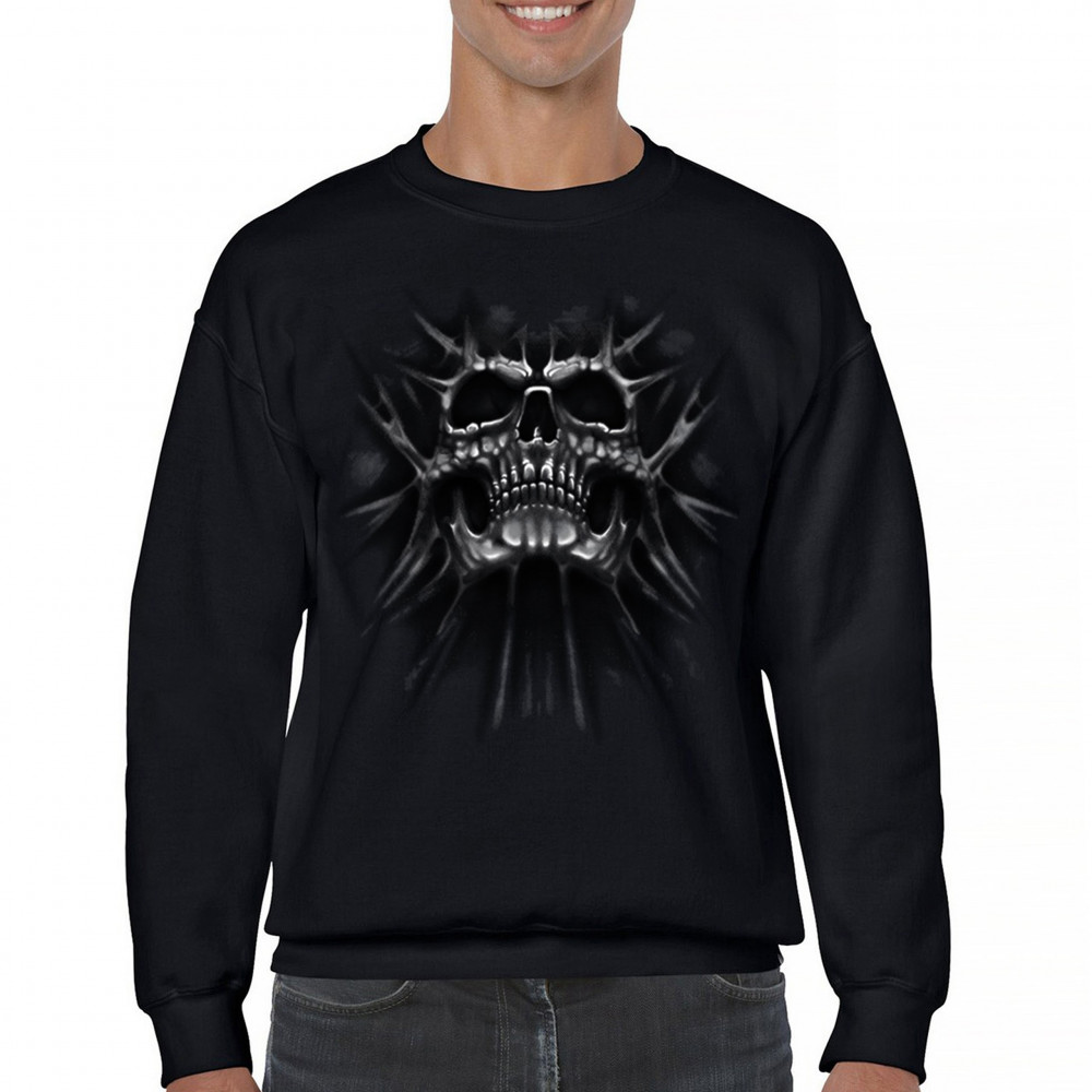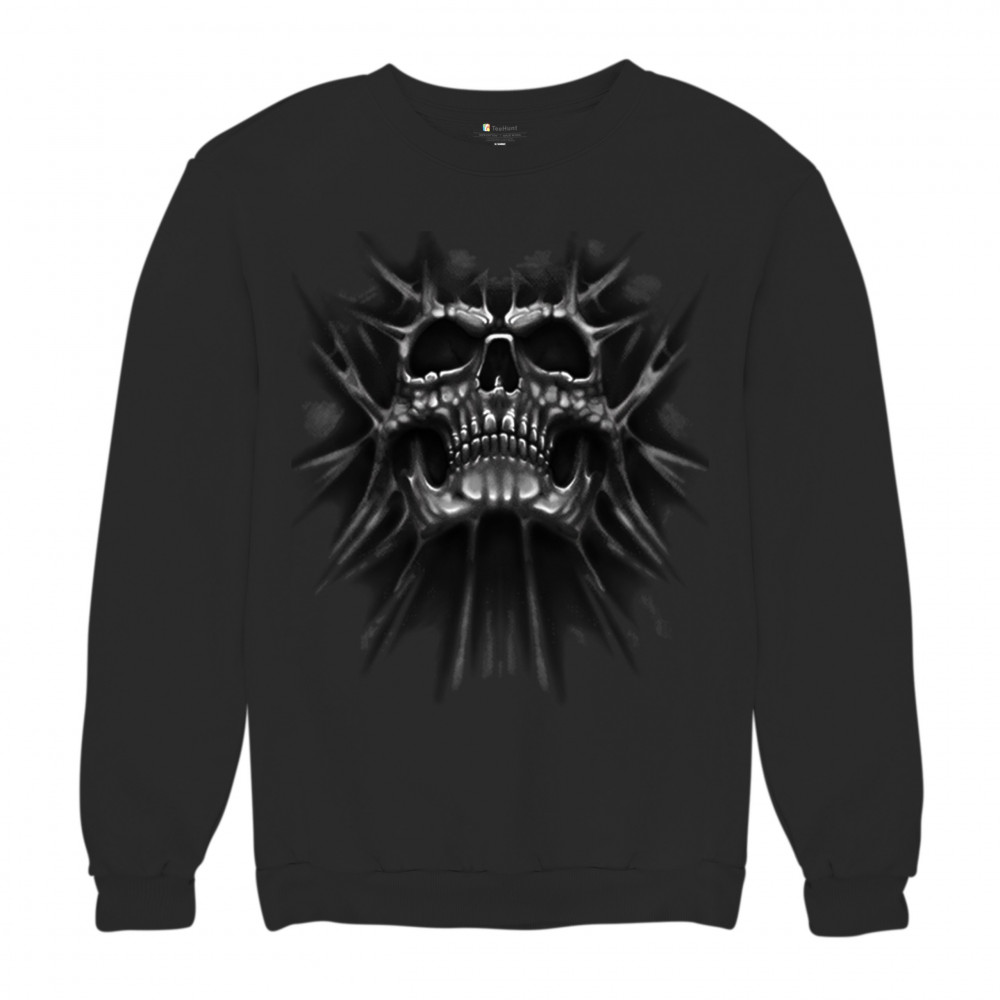 GRAY SKULL ROOTS crewneck sweatshirt gothic skeleton outlaw biker heavy metal black