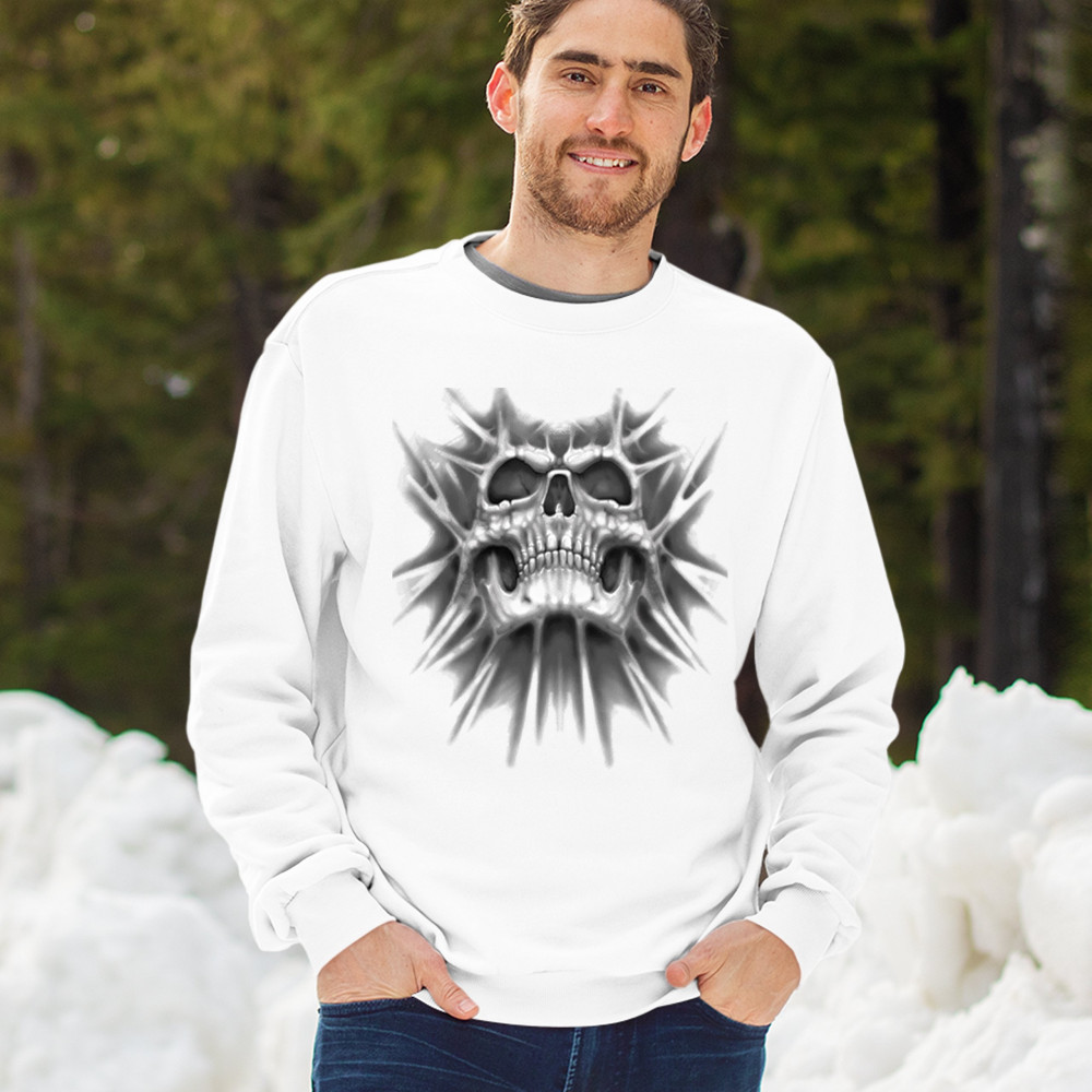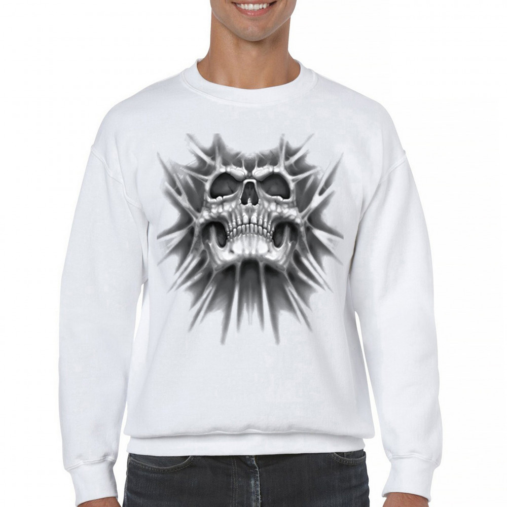 Gothic skull biker shirt with roots design. Perfect for Metalhead, Rock n Roll fans, edgy rebel fashion, and spooky Halloween vibes.
