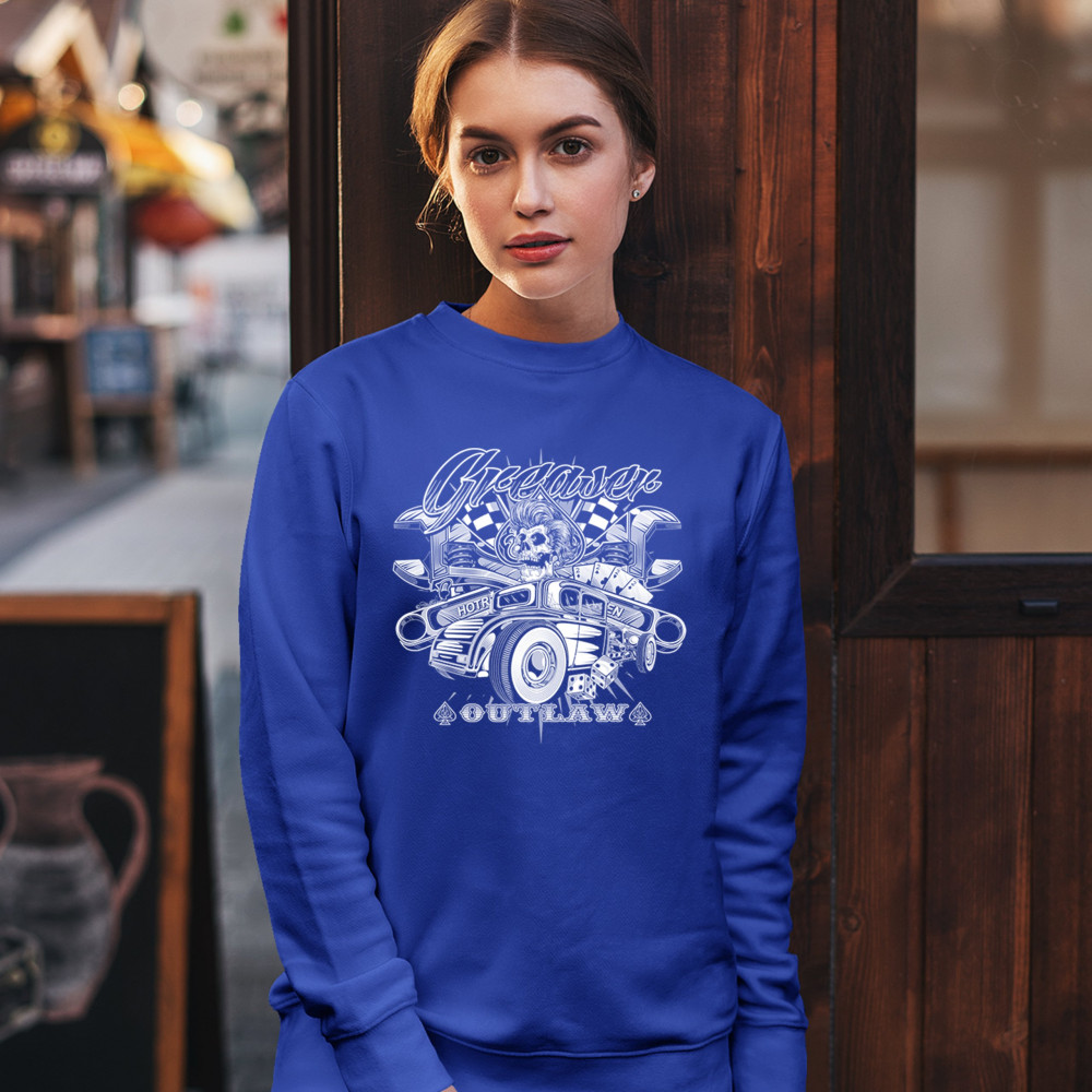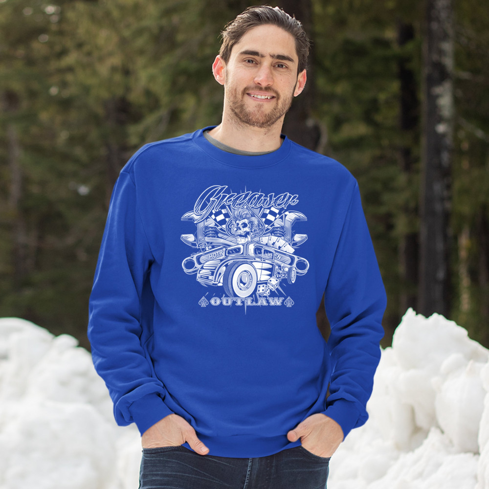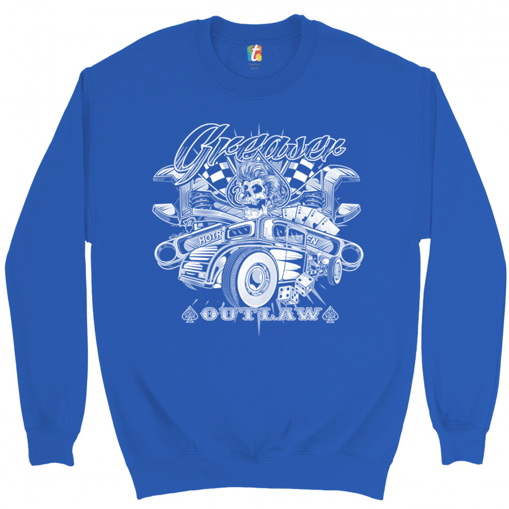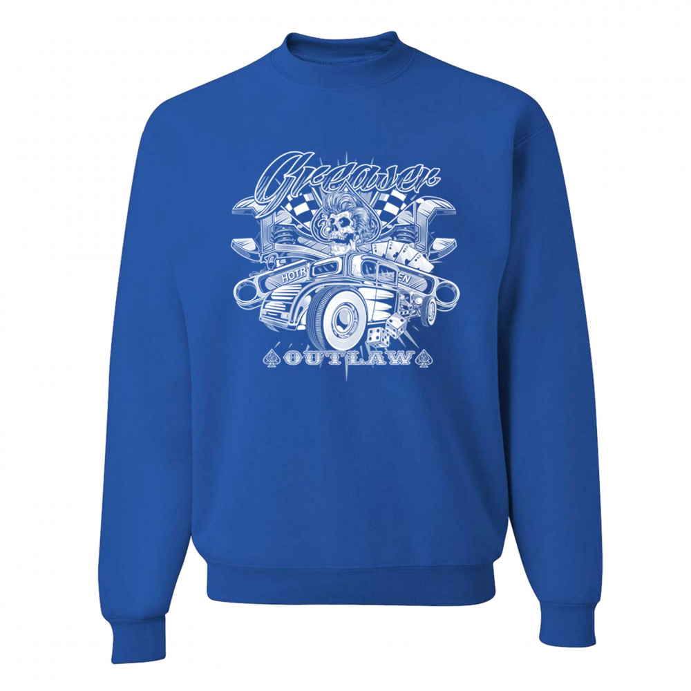 GREASER OUTLAW sweatshirt kustom kulture old school vintage hot rod crewneck royal blue