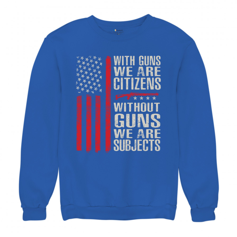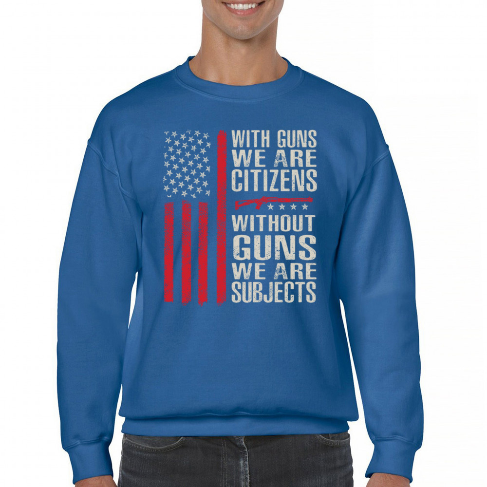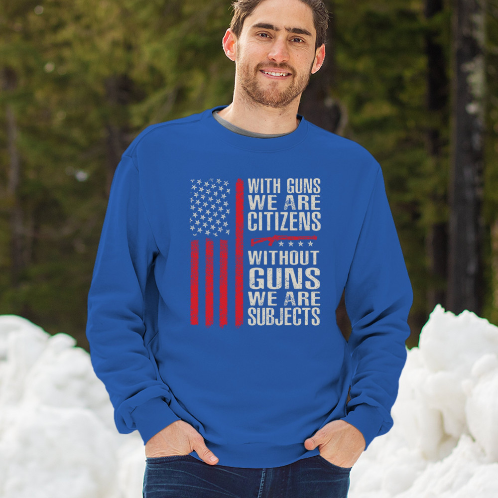 Make your voice heard with this powerful pro-2A design featuring an AR-15 graphic and distressed red American flag. The quote “With Guns We Are Citizens, Without Guns We Are Subjects†speaks directly to the heart of liberty and personal defense. A must-have for patriots, protestors, and gun rights supporters who defend the Constitution.