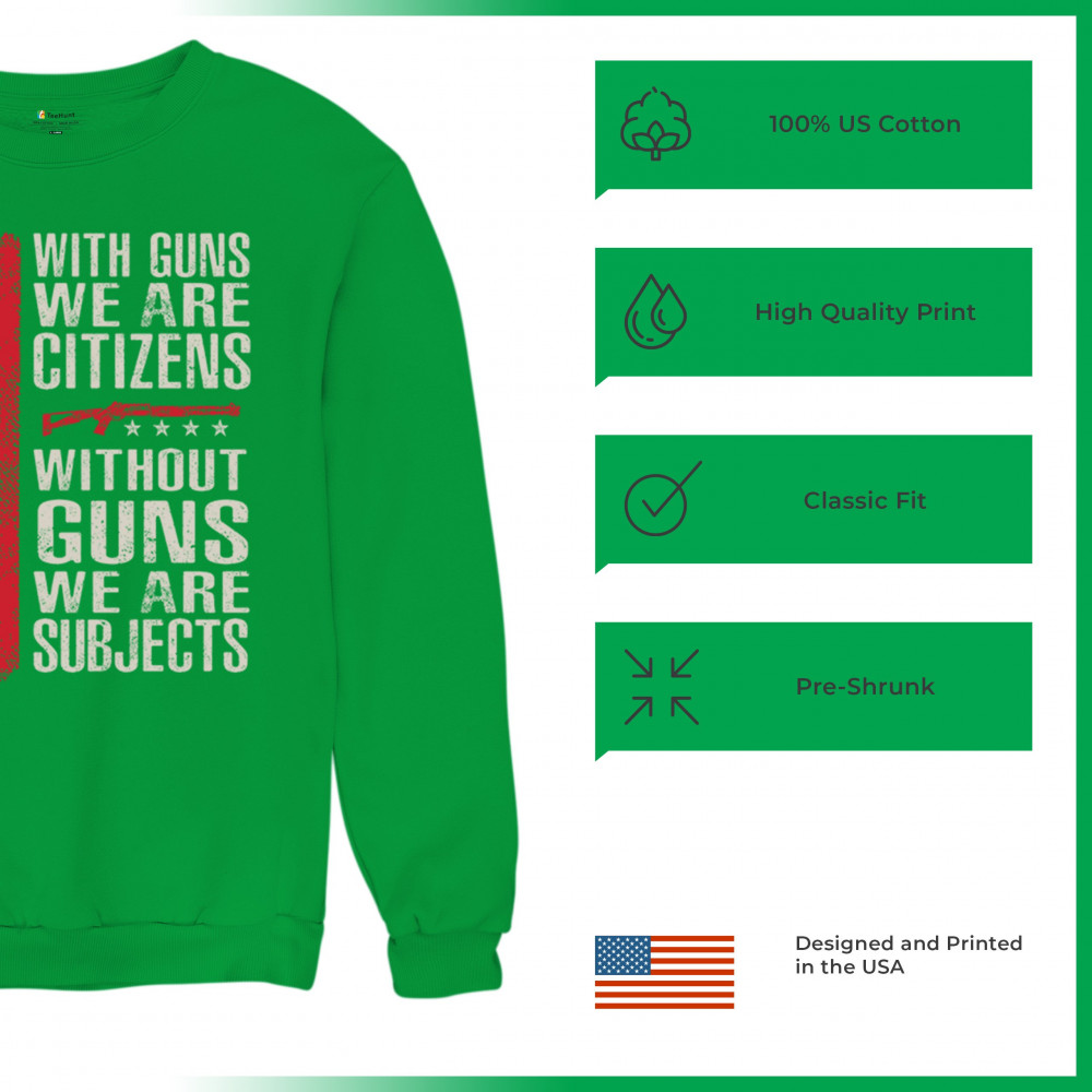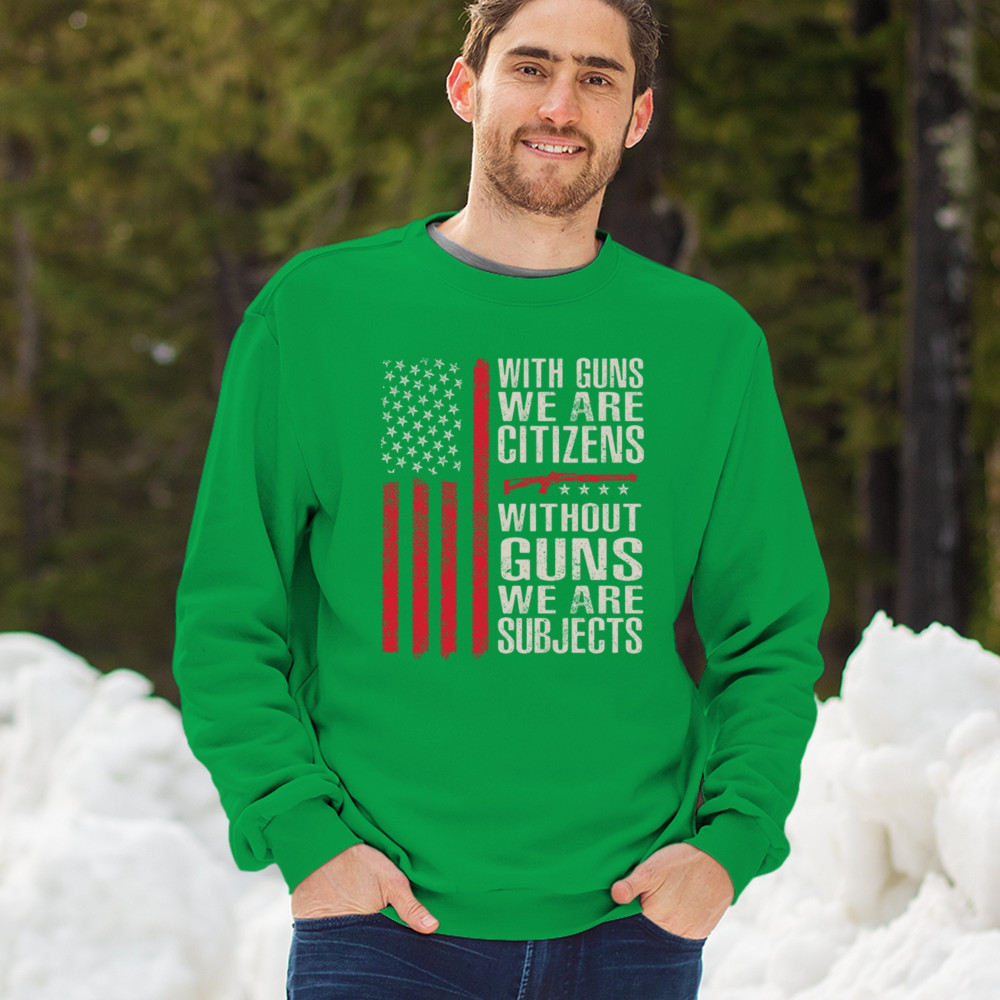 Make your voice heard with this powerful pro-2A design featuring an AR-15 graphic and distressed red American flag. The quote “With Guns We Are Citizens, Without Guns We Are Subjects†speaks directly to the heart of liberty and personal defense. A must-have for patriots, protestors, and gun rights supporters who defend the Constitution.
