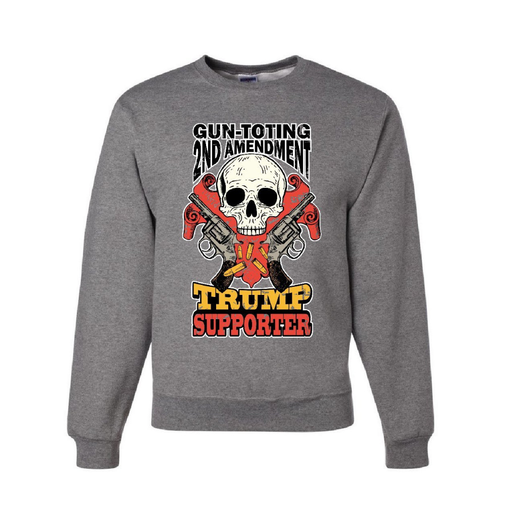 GUN-TOTING 2ND AMENDMENT TRUMP SUPPORTER gun-toting trump supporter sweatshirt 2nd amendment skull revolvers sweater gray