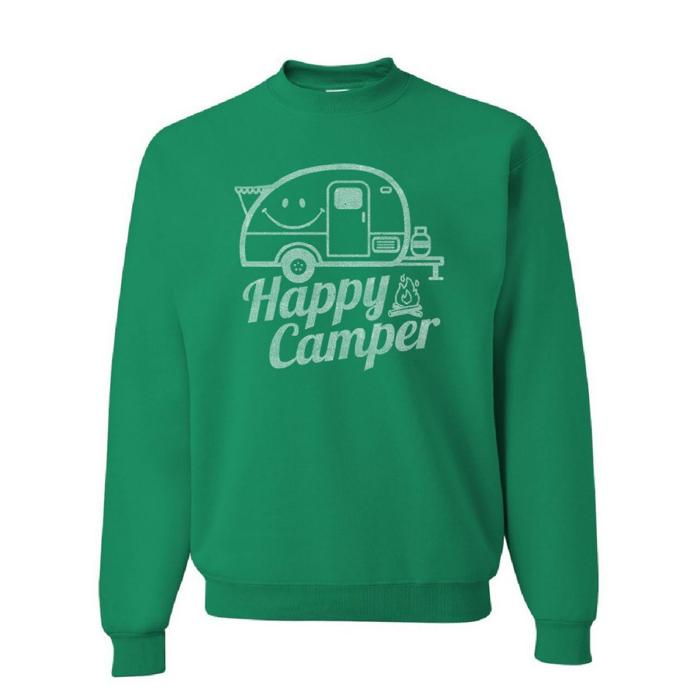 HAPPY CAMPER sweatshirt rv tourism camping summer nature travel sweater green
