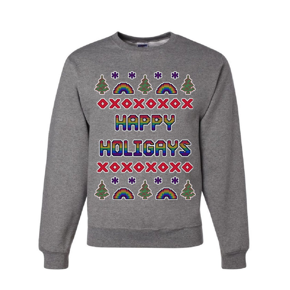 HAPPY HOLIGAYS sweatshirt gay merry christmas ho ho ho lgbt xmas sweater gray