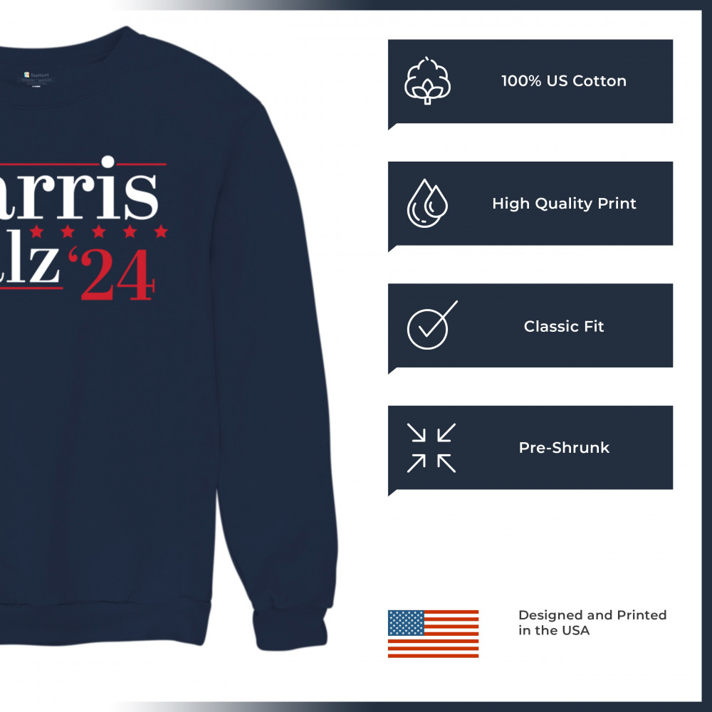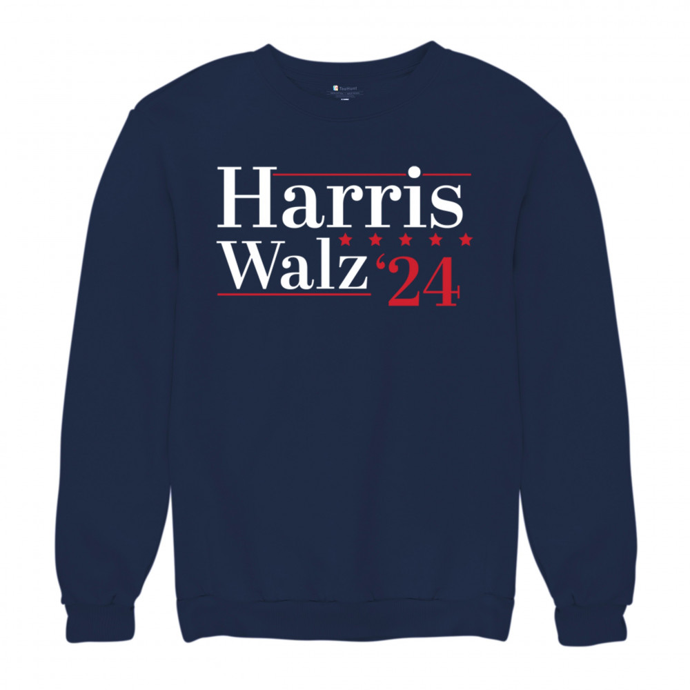 HARRIS WALZ 2024 sweatshirt kamala madam president 47 i'm speaking crewneck navy blue