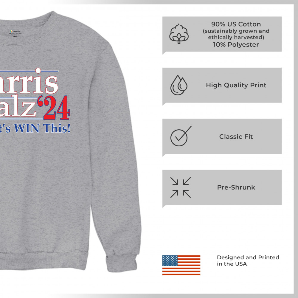 Support Kamala Harris and Tim Walz in the 2024 election. A design for anti-Trump supporters and Democrats advocating for justice, equality, and inclusion.